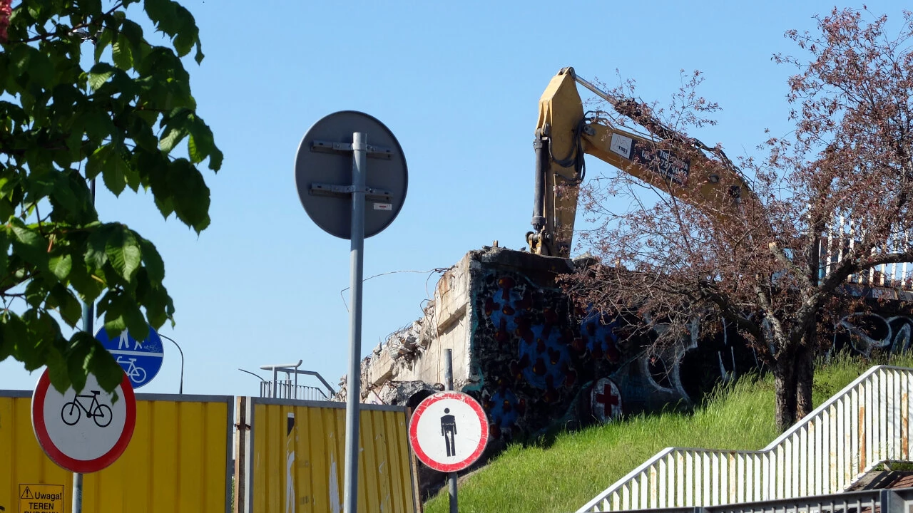 A tymczasem wiadukt przy Kinowej zniknął. Pustki uczynił w krajobrazie. Zniknął w weekend, a odbudowa się nie zaczęła. Kawał betonu został zgruzowany i wywieziony. A odbudowa nie rusza. Czyżby przetarg był ogłoszony tylko na rozbiórkę?