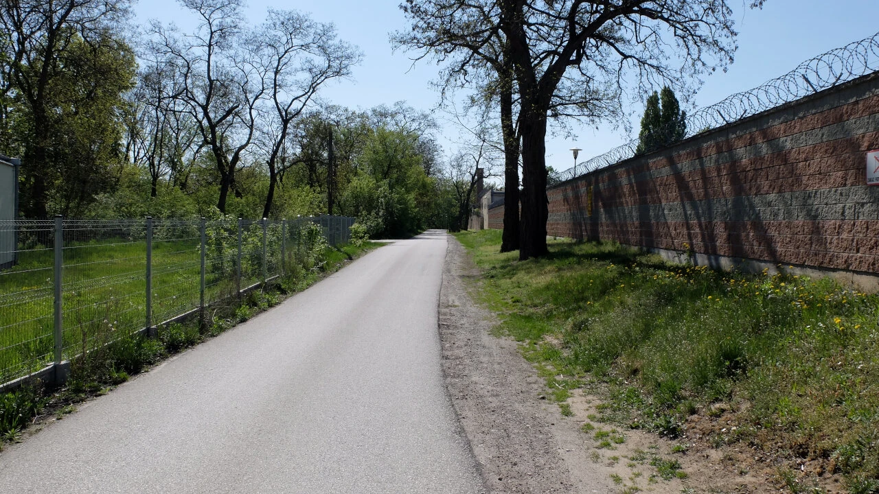 Skręcamy w Rychnowską i Strzygłowską dojeżdżamy do Wału Miedzeszyńskiego. Mijamy coś z kategorii tajne / poufne skryte za płotem z drutem kolczastym.