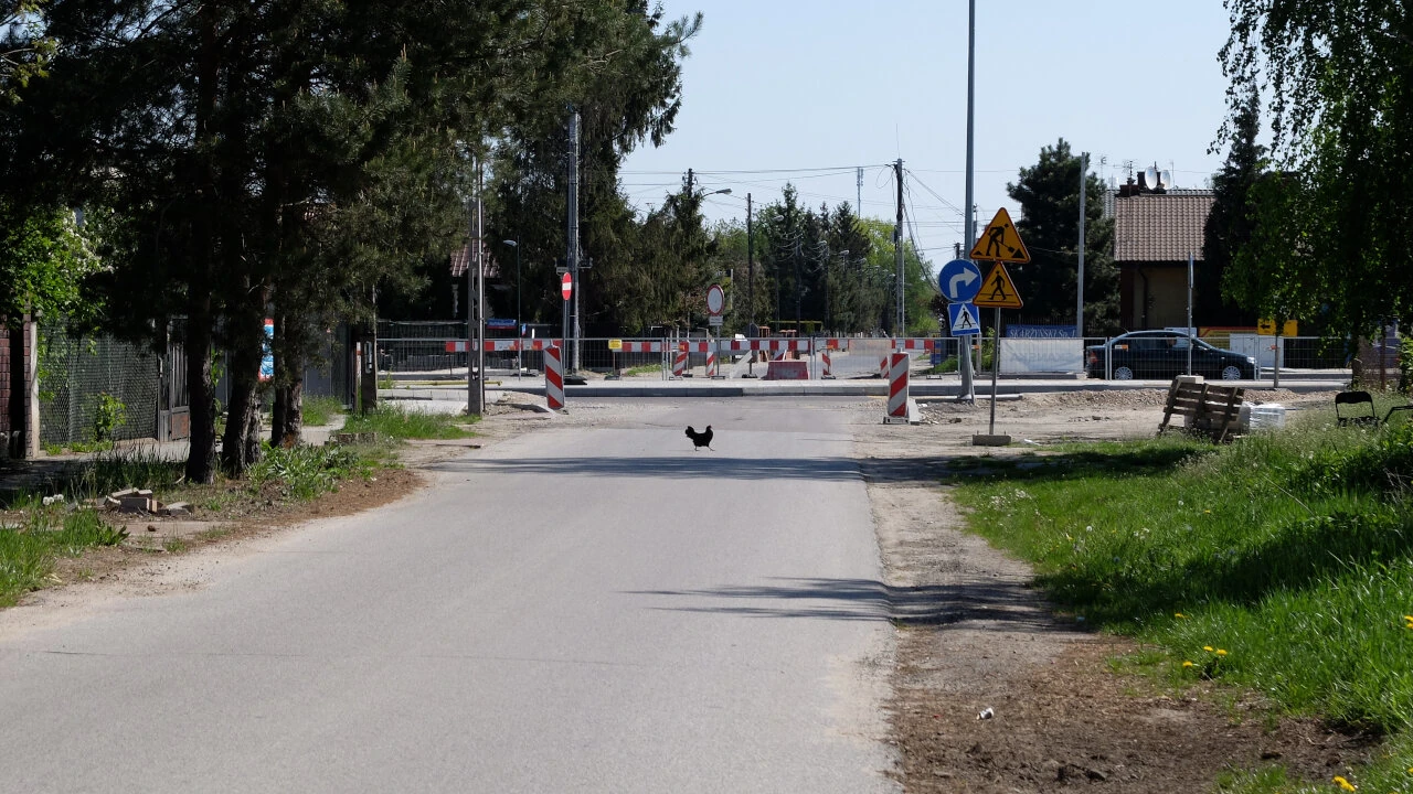 Nieopodal skrzyżowania z Traktem Lubelskim zjeżdżamy z wału na drogę techniczną i wiedzeni porywem serca, skręcamy w ulicę Romantyczną.