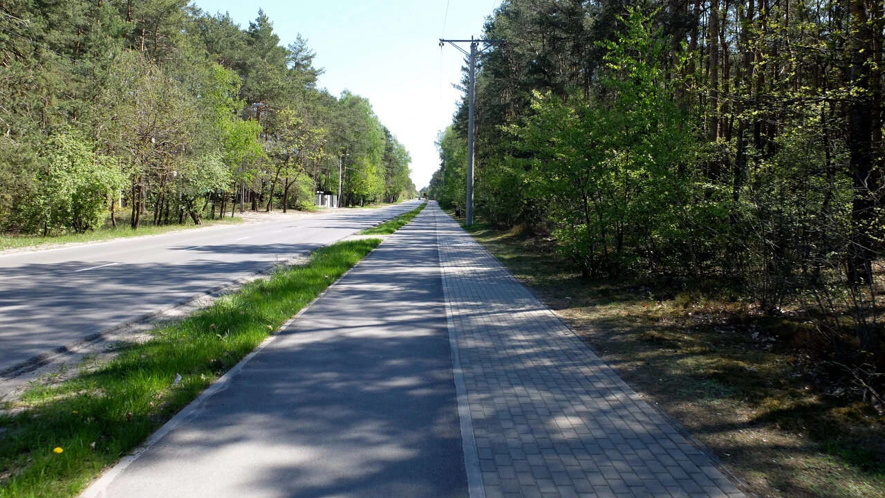 Jedziemy wzdłuż Wału, który jest tu już drogą wojewódzką nr 801.