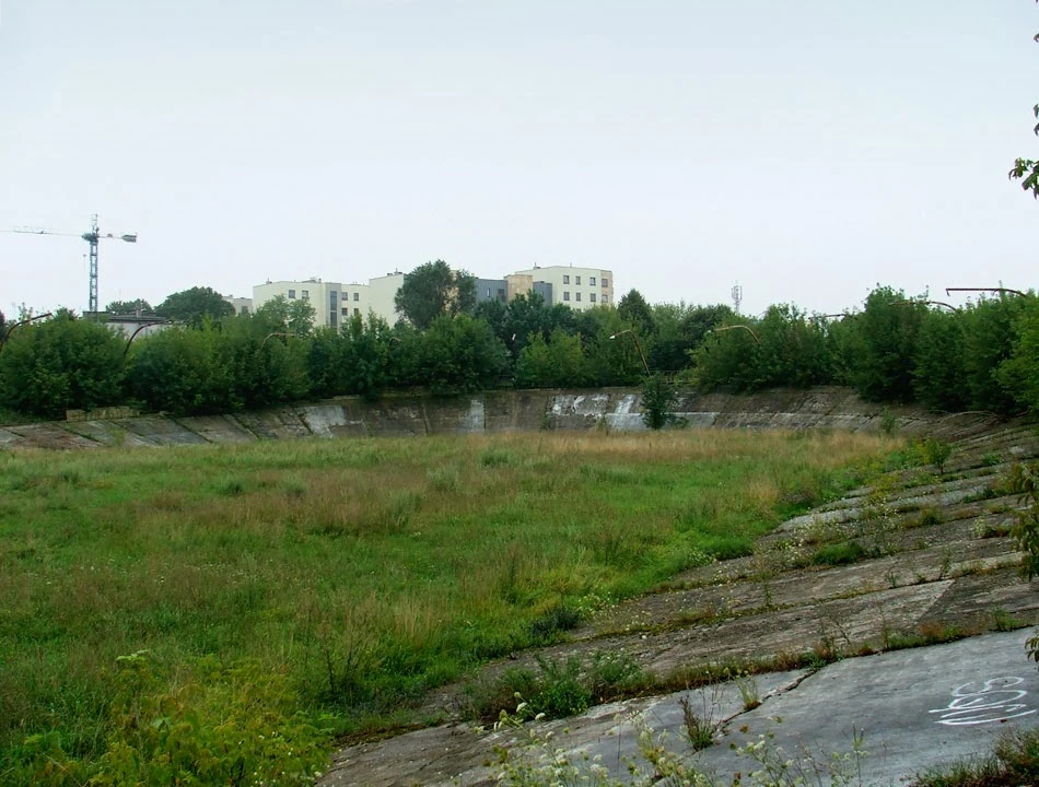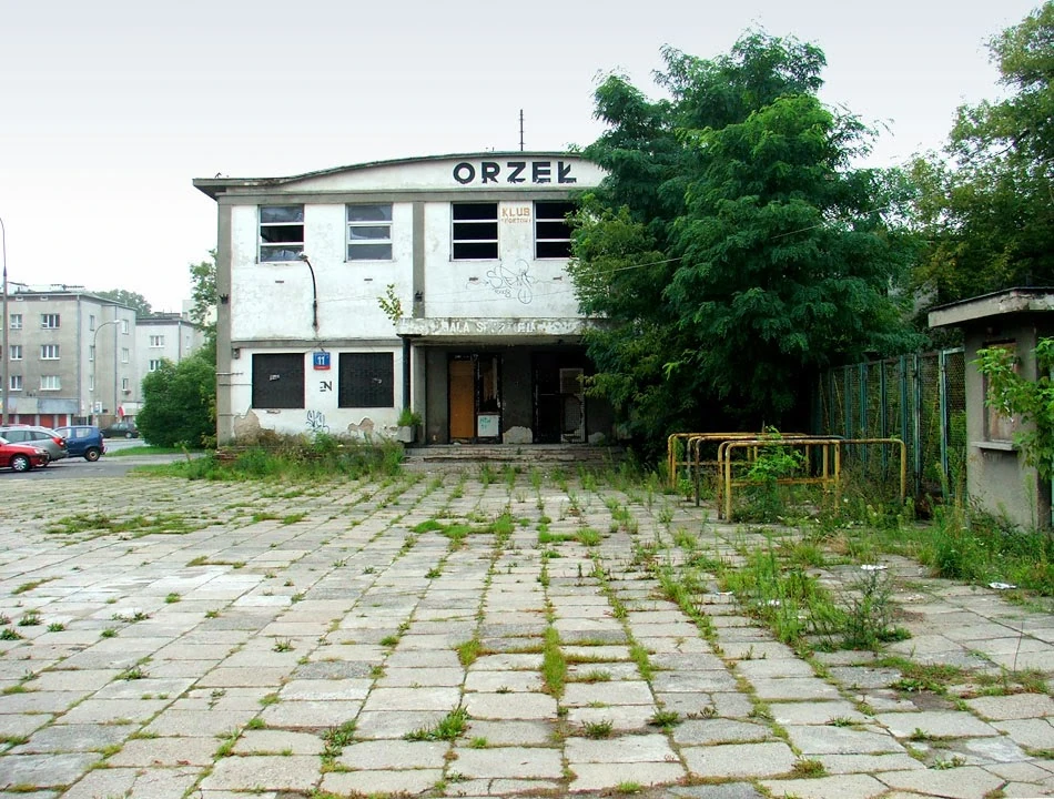 Obaj mieszkamy na Grochowie, ale rzadko urządzamy sobie wyprawy po jego terenie; dzisiaj pora to naprawić. Zaczynamy, a jakże, od toru kolarskiego, a w zasadzie od jego smętnych resztek. Warszawa miała przed wojną tor kolarski na Dynasach na Powiślu, ale w czasie wojny został doszczętnie zniszczony. Nowe Dynasy, tor RKS Orzeł, powstały na Grochowie, przy Mińskiej, na początku lat siedemdziesiątych. O ile tor na Dynasach był drewniany, o tyle ten nowy zbudowany został z betonu. Jak na owe czasy był naprawdę nowoczesny. Dzisiaj straszy chaszczami, zdemolowaną nawierzchnią i ruinami zabudowań zaplecza. Tor zajaśniał jeszcze chwilę w 1980 roku, gdy w „Misiu” Barei zagrał Klub Tęcza. Nędzę toru szczególnie mocno widać w porównaniu z eleganckim lekkoatletycznym stadionem Orła.