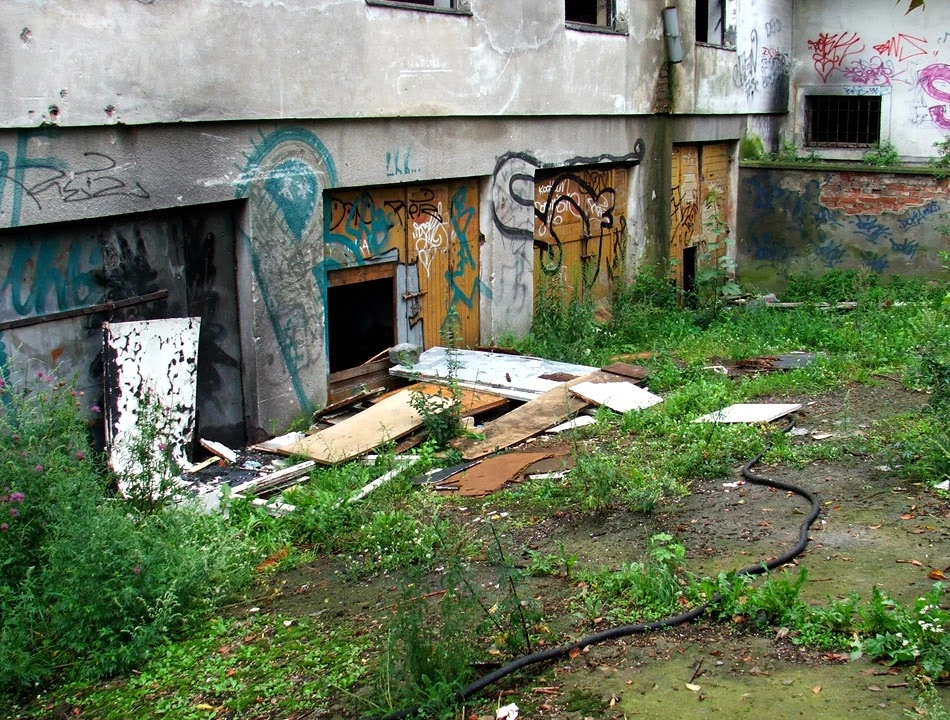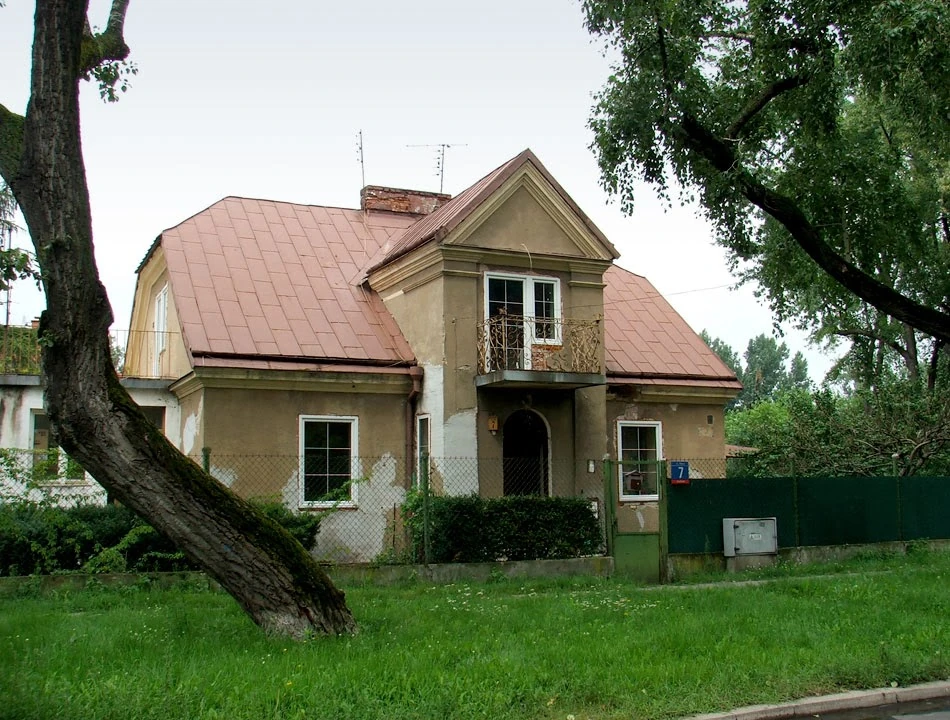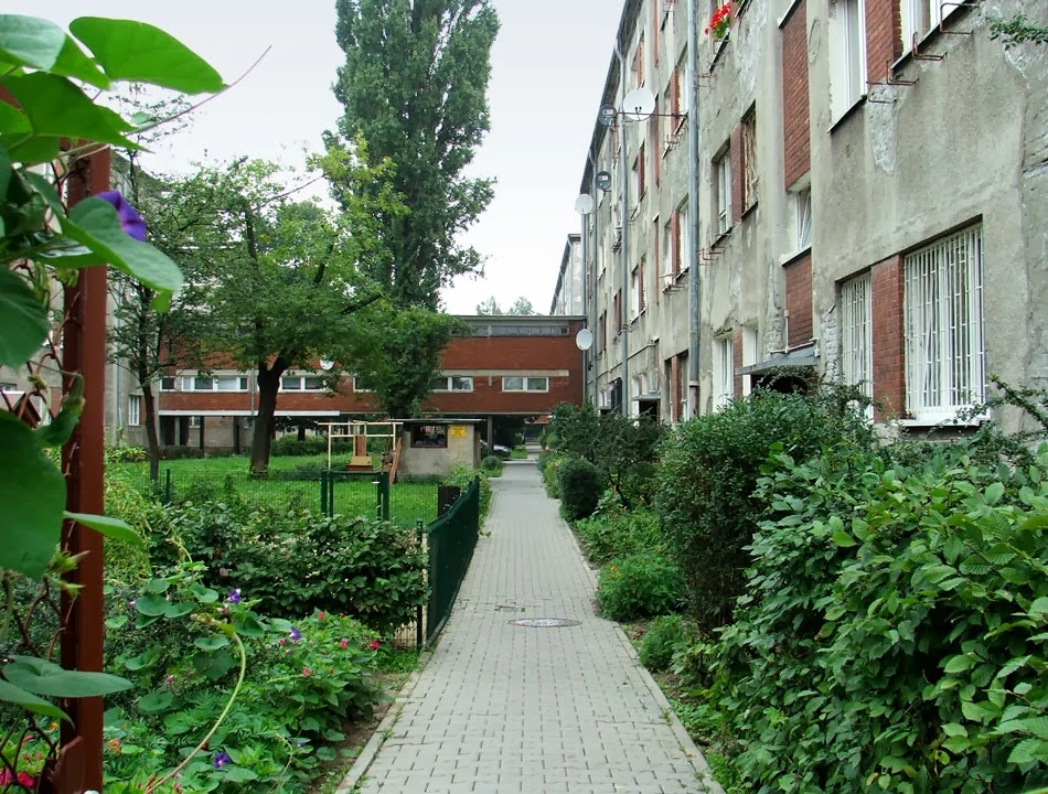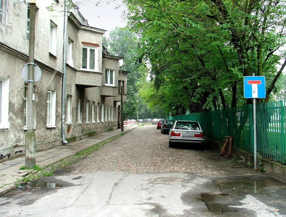 Na przeciwległym narożniku znajduje dom zwieńczony ozdobną wazą. To fragment wybudowanego w latach dwudziestych osiedla dla bezdomnych. Narożnik zajmowała administracja osiedla, pozostała część to jednopokojowe klitki ze wspólnymi łazienkami i toaletami. Ciekawe jak dzisiaj wyglądają te mieszkania? Piotrek nie wspomina zbyt dobrze tego miejsca: przed laty w domu z ozdobną wazą był na komisji wojskowej, która uznała go za zdolnego do obrony ojczyzny.