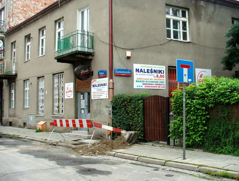 Jedziemy w stronę Terespolskiej. Na rogu Rybnej i Kamionkowskiej jest fajna naleśnikarnia otwarta 7 dni w tygodniu. Jej główną klientelę stanowią studenci i studentki Szkoły Wyższej Psychologii Społecznej. Naleśniki dość tanie i dobre, kawa przyzwoita.