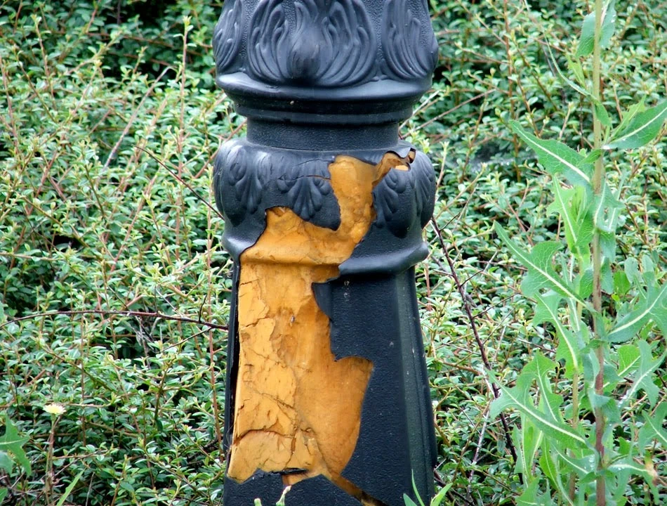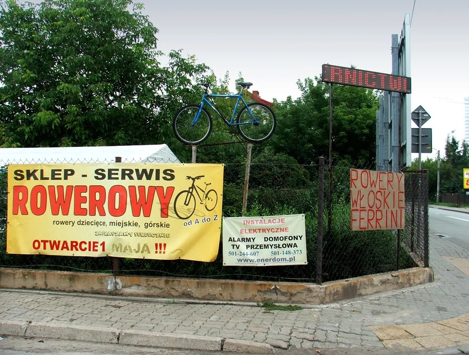 Na rogu Traczy i Chełmżyńskiej czeka nas miła niespodzianka — sklep i serwis rowerowy. Natykamy się też na niemiłą niespodziankę: okazuje się, że latarnie stojące wzdłuż ulicy tylko udają żeliwne.