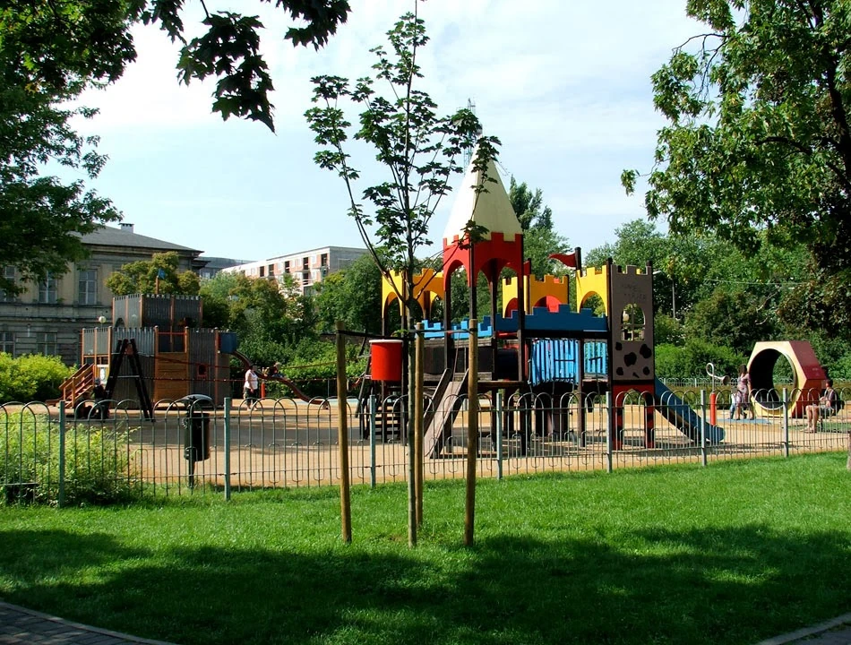 Naprzeciwko domów Towarzystwa Osiedli Robotniczych jest pięknie zagospodarowany skwer. Dzieciaki mają tu place zabaw, młodzież wielofunkcyjne boisko, lubiący odpoczynek znajdą tu mnóstwo ławek, a zwolennicy mięsiwa z rusztu mogą pogrilować wśród drzew.
