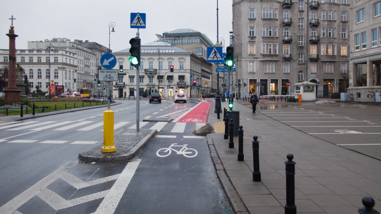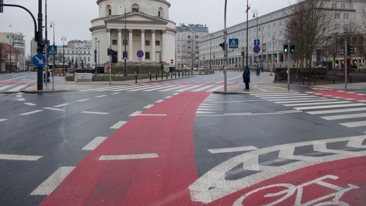 Plac Trzech Krzyży rowerowo został bardzo ucywilizowany. Są wreszcie pasy rowerowe i drogi, wyznaczono je po obu stronach placu. Jeździ się teraz zdecydowanie lepiej. Odkryto też fragment przedwojennych torów tramwajowych. Trochę za dużo tu może świateł i trochę za mało zieleni, ale zmiana jest wyraźnie na plus.