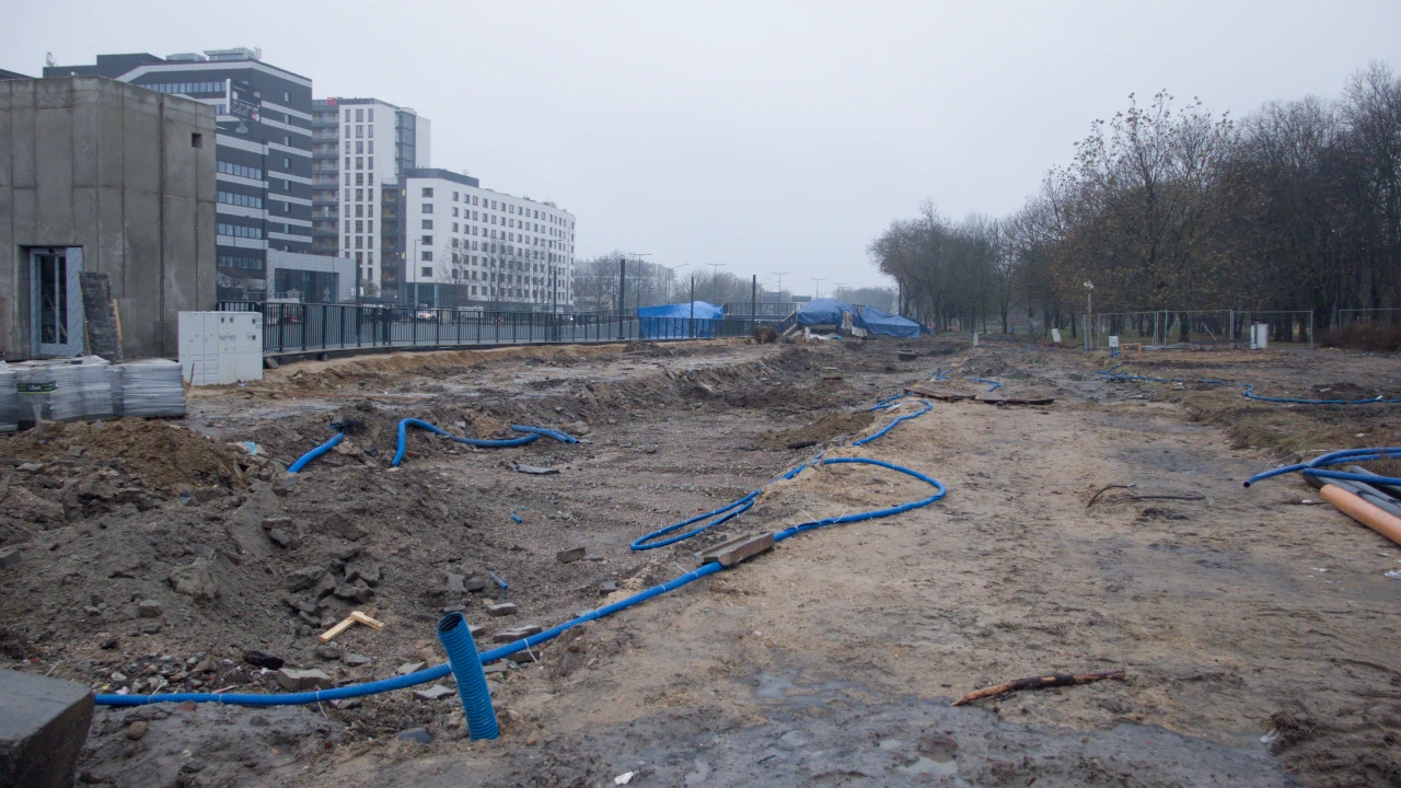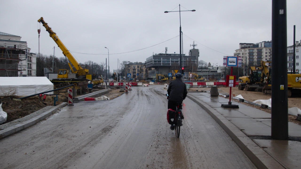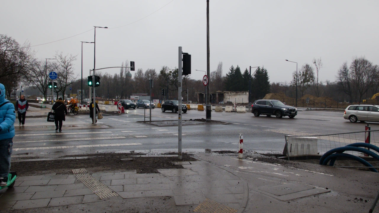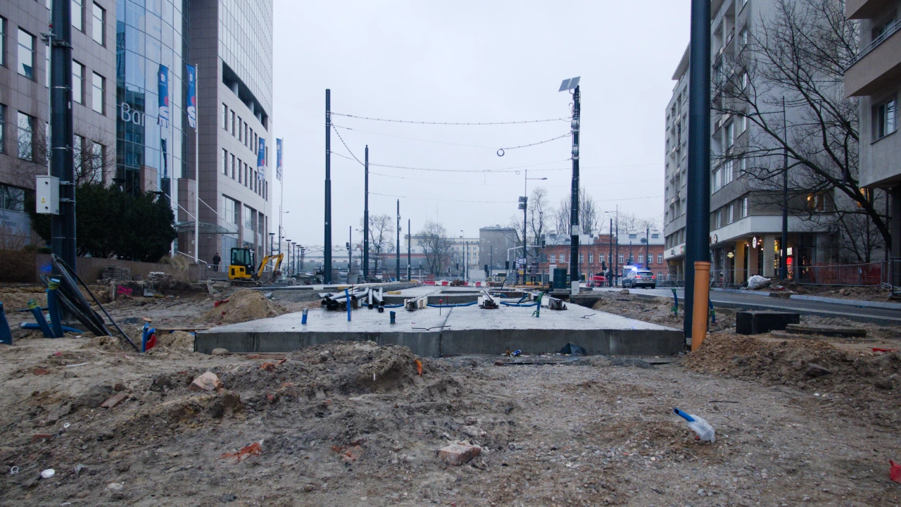 Tu także rycie w ziemi trwa. Gdzieś tu miał powstać kawałek drogi dla rowerów przy pętli tramwajowej; ale obie te inwestycje jeszcze nie powstały.