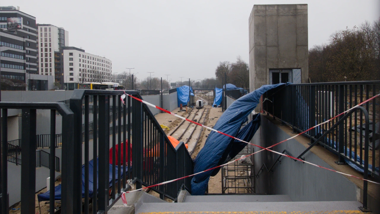 Widać położone tory, nie możemy się doczekać gdy pojedzie tędy tramwaj.