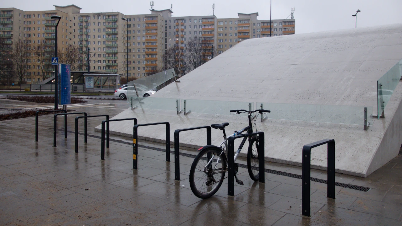 Nowe odcinki, biegnące wzdłuż Kondratowicza, są szerokie. Przy stacjach są stojaki dla rowerów.