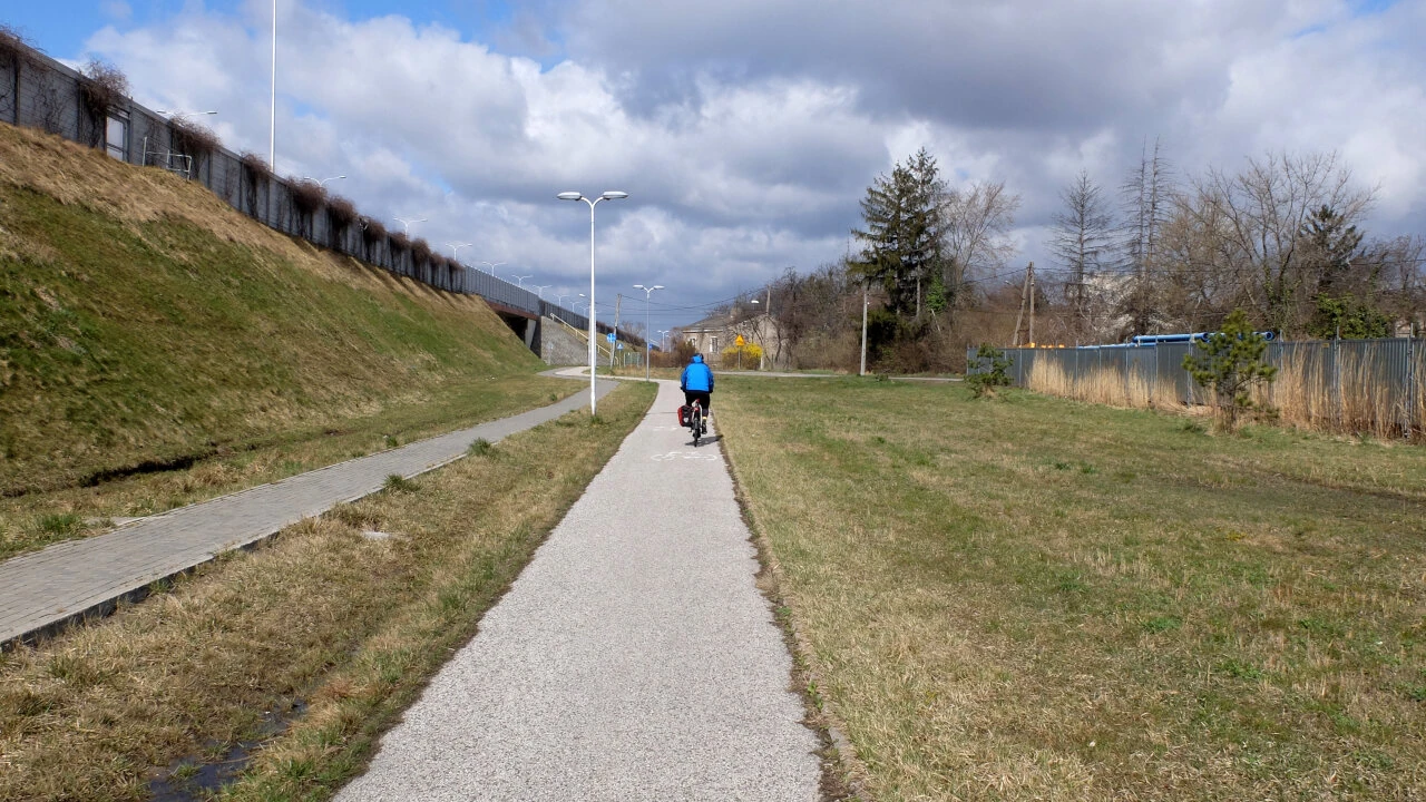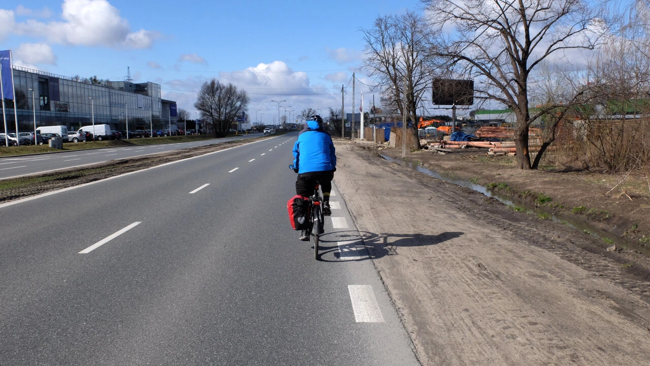 Tu jeszcze jest droga dla rowerów, ale wiemy, że zaraz ta radość się skończy. I zaiste, gdzieś za skrzyżowaniem Ryżowej i Alej, droga wojewódzka 719 skazuje nas na jazdę w towarzystwie samochodów. Dzisiaj niedziela, w dodatku palmowa, ruch nieduży, ale w powszedni dzień jeżdżenie tędy grozi uszkodzeniem ciała.