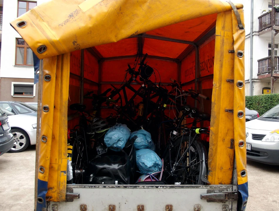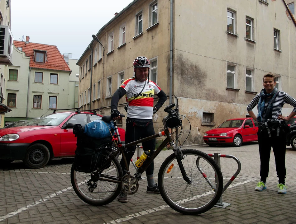 Kilka minut pedałowania i jesteśmy w centrum Jeleniej, tam czeka na nas przyczepa i zaprzyjaźnieni Grzesiek i Marzena, by przetransportować nas do Zgorzelca.