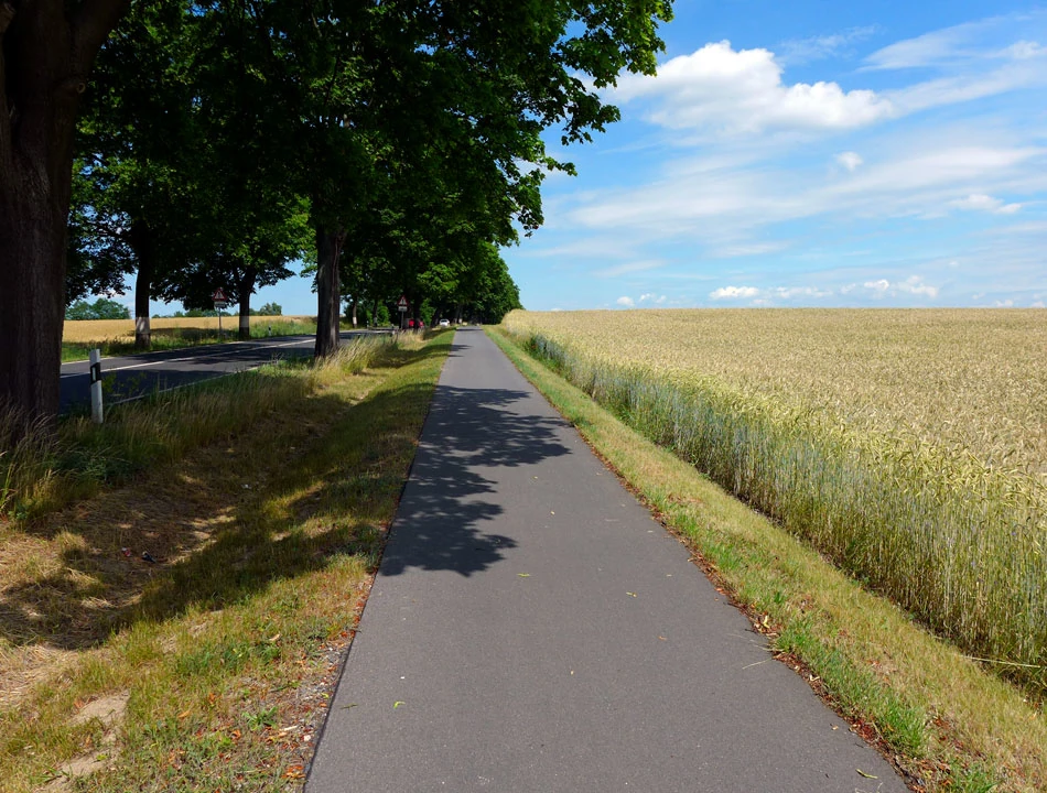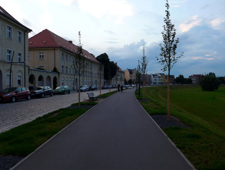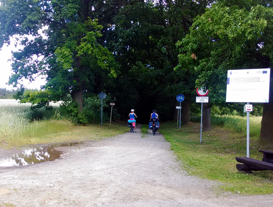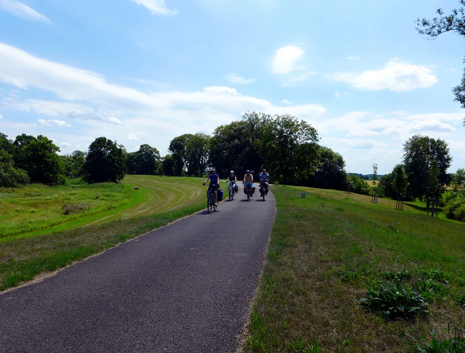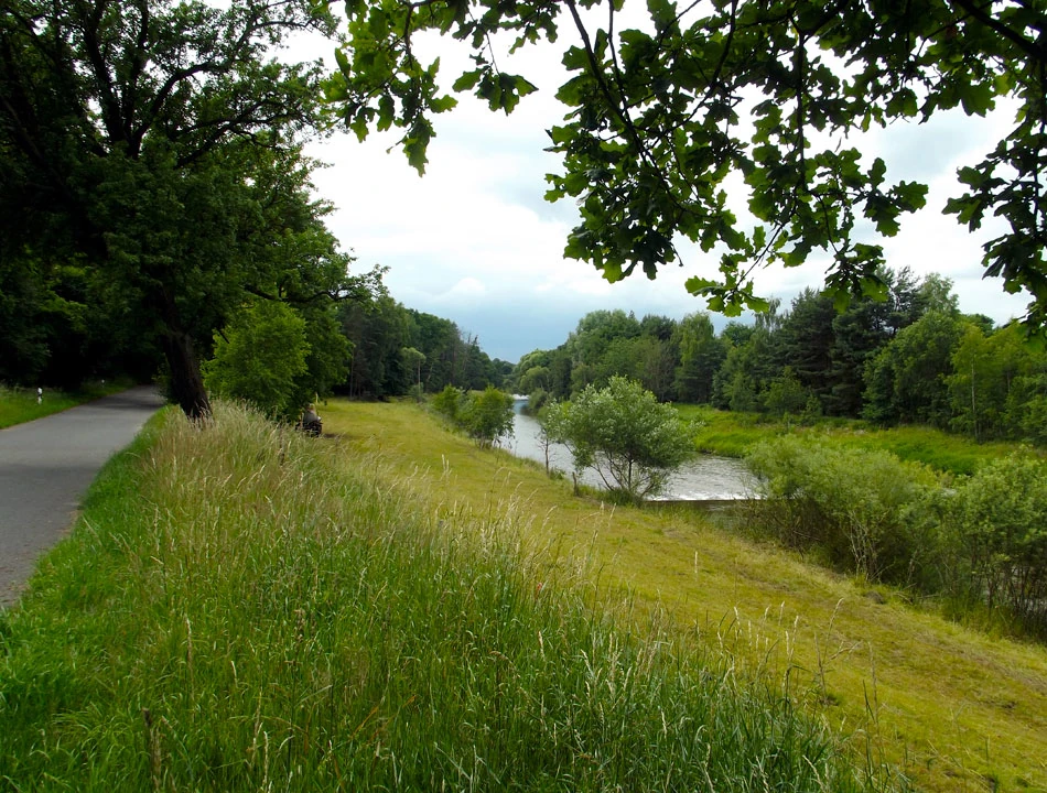 W Görlitz ładnie, cicho i spokojnie. Ptaszki śpiewają, mało ludzi, no sielanka w zasadzie. Po chwili wyjeżdżamy z miasta i jedziemy w stronę Mużakowa lub, jak kto woli, Bad Muskau. Trasa biegnie zgodnie z rzeką, na razie Nysą Łużycką. Czasem wodę widać, czasem nie. Trasa biegnie polem, lasem, wsią — to jednak nie ma znaczenia dla jakości nawierzchni — cały czas praktycznie jest to wyasfaltowana, dość szeroka droga.