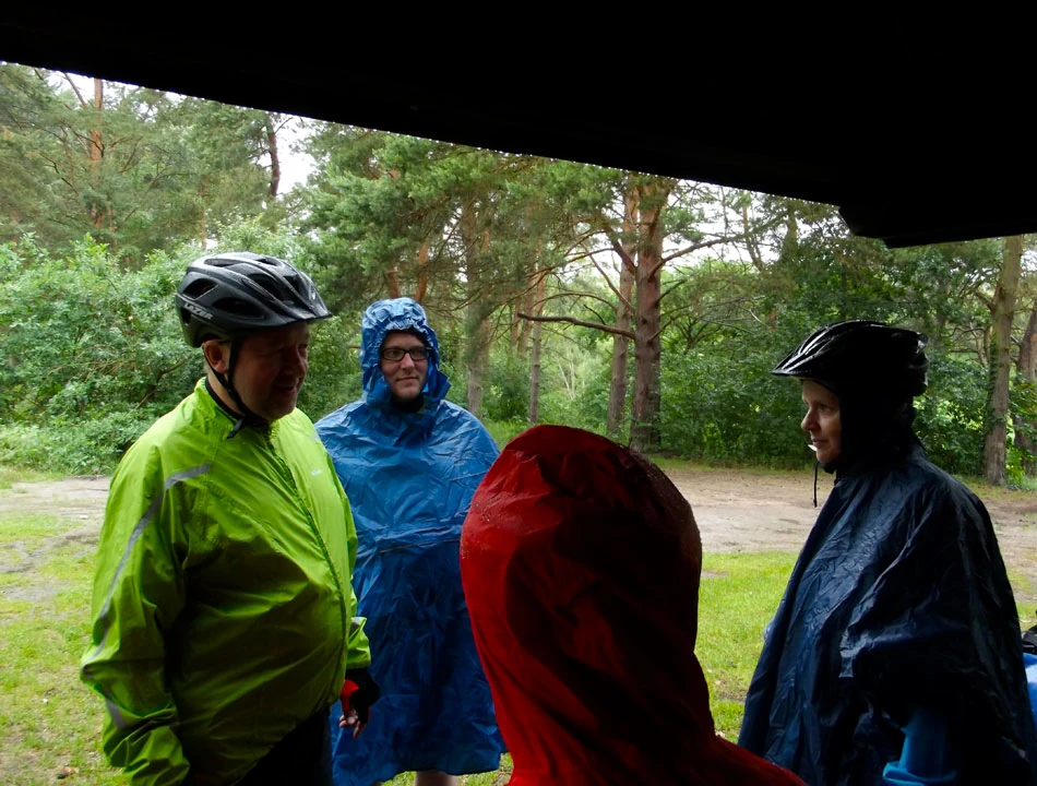 Zaczyna kropić, więc chowamy się pod jedną z wielu wiat. Deszcz się rozwija, więc my też rozwijamy ubranka ochronne i w drogę.