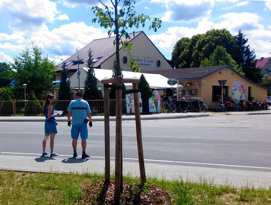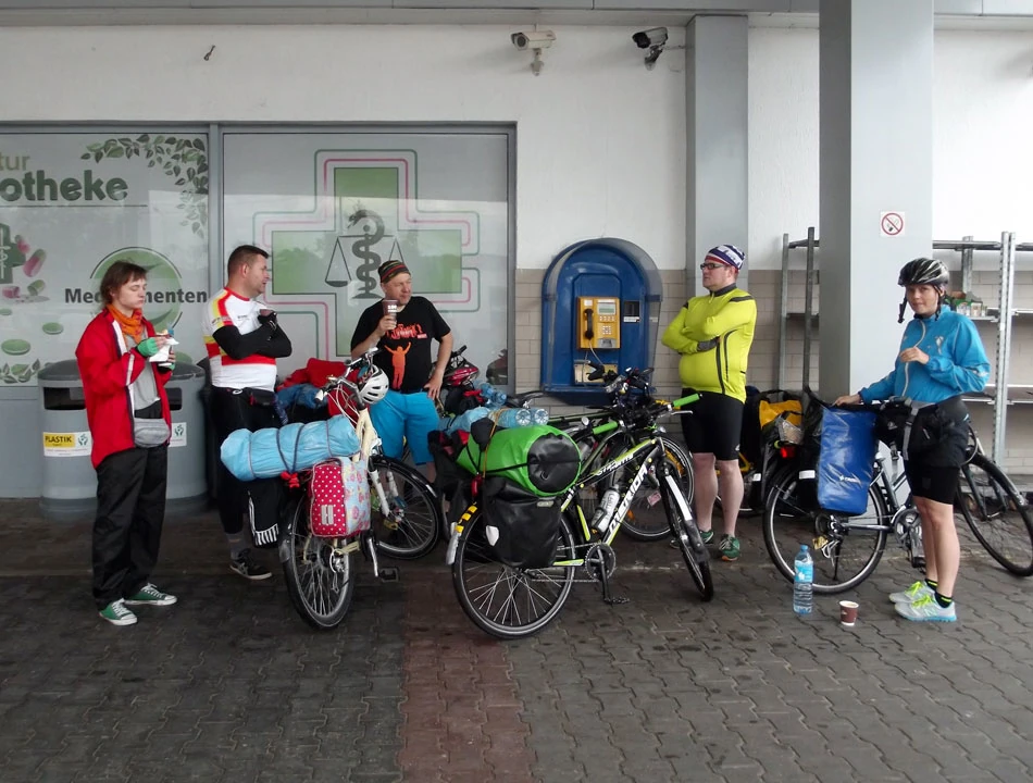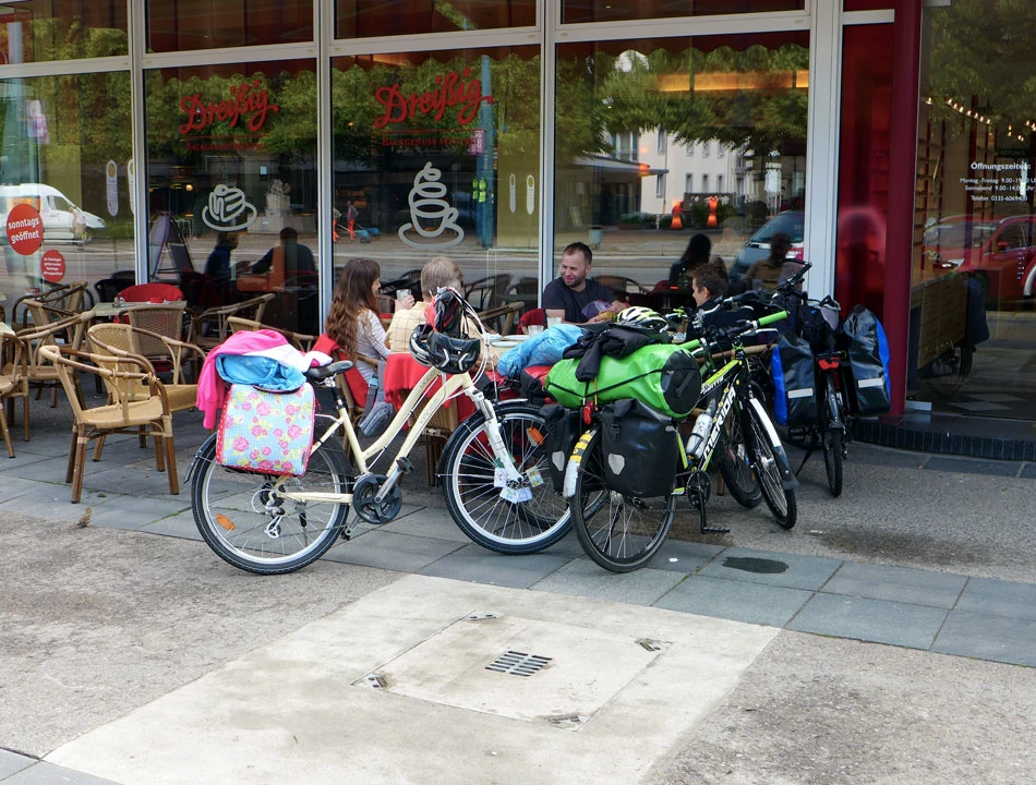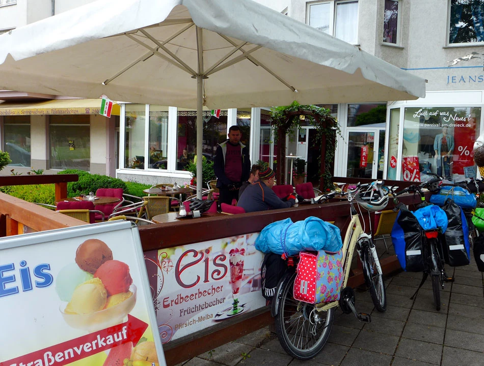 A my we czwórkę ruszamy na śniadanie. Schwedt to najbardziej enerdowskie miasto na naszej drodze. Ludzie dużo palą, na ulicach bardziej siermiężnie — wkoło ludzie podobni do nas. Znajdujemy obok poznanego dnia poprzedniego Kauflandu śniadaniownię i jemy śniadanie. A potem już ruszamy w stronę Szczecina.