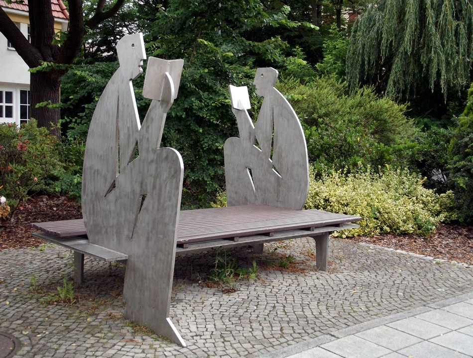 Samo miasteczko dość senne, mało ludzi, może ze względu na niedzielę. Szukamy miejsca na popas gastronomiczny i kawowy. Po drodze mijamy urokliwą czytelniczą ławeczkę.