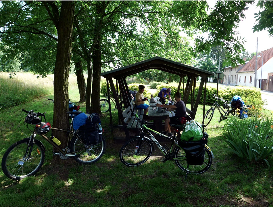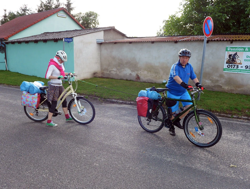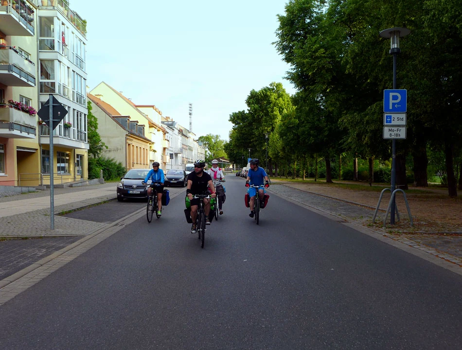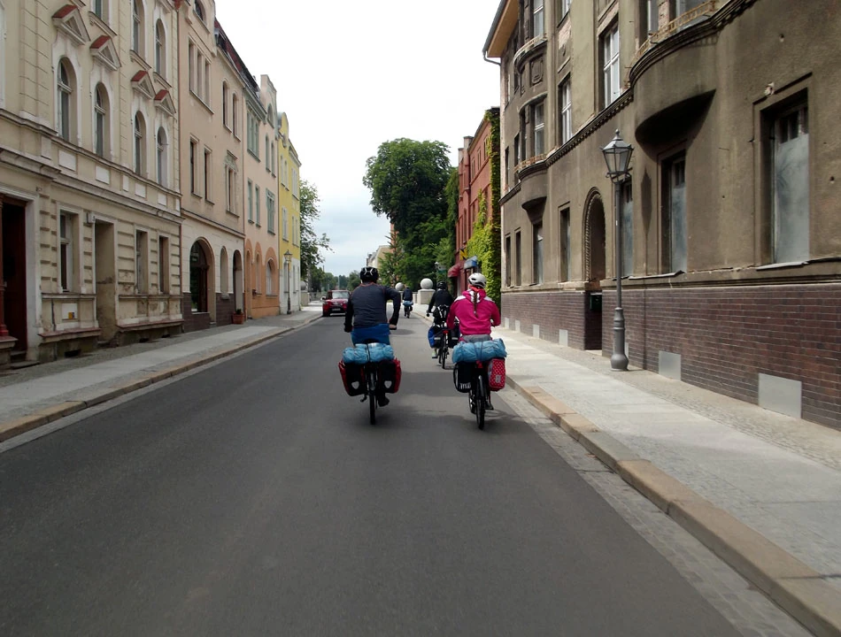 Do Schwedt dojeżdżamy już wieczorem. To, co najbardziej zaskakuje to pozamykane pensjonaty. Wszędzie kartki, że po dwudziestej recepcja nieczynna i można dzwonić telefonem do obsługi. Dzwonimy, ale nic z tego. Vis-a-vis hotelu z zamknięta recepcją znajdujemy kwaterę. Gospodyni oferuje nam elegancką dobudówkę: dwa pokoje z kuchnią. Jeszcze szybki rajd do Kauflandu, bo o dwudziestej drugiej zamykają — byliśmy ostatnimi klientami. Robimy kolację, pijemy piwko i idziemy spać. Tym razem nocleg wyniósł nas 14 € na osobę.