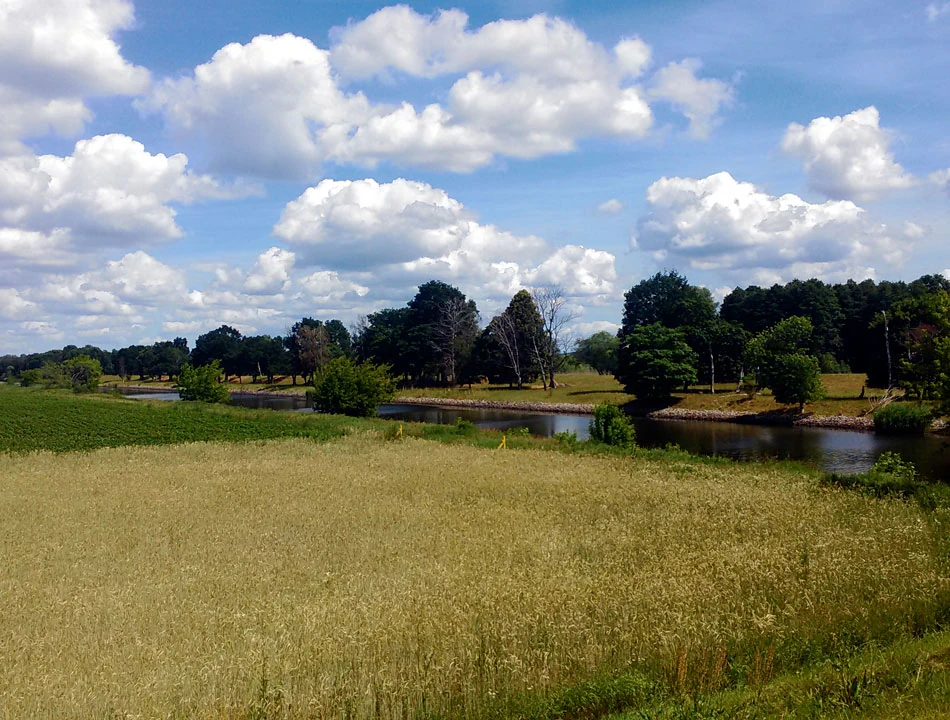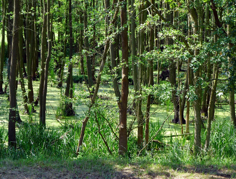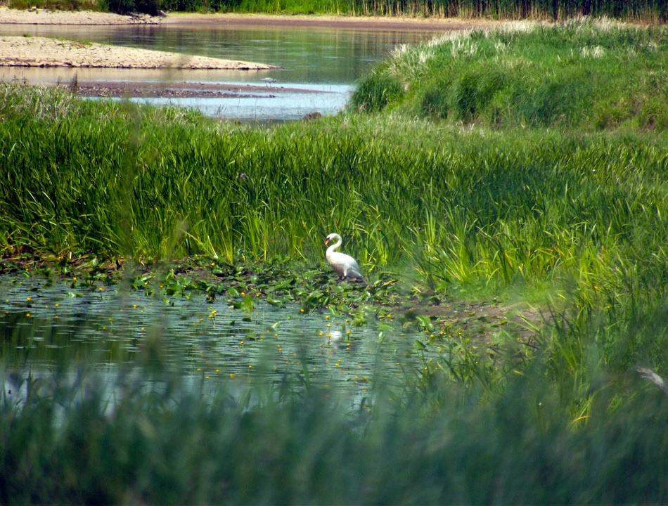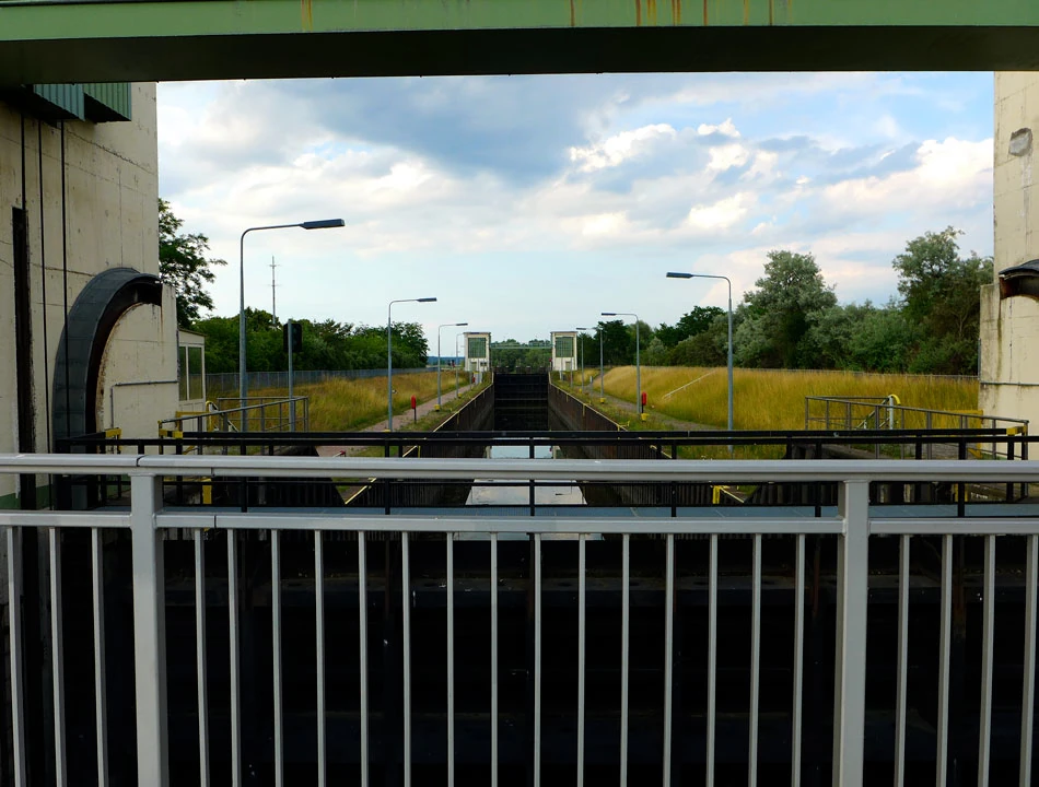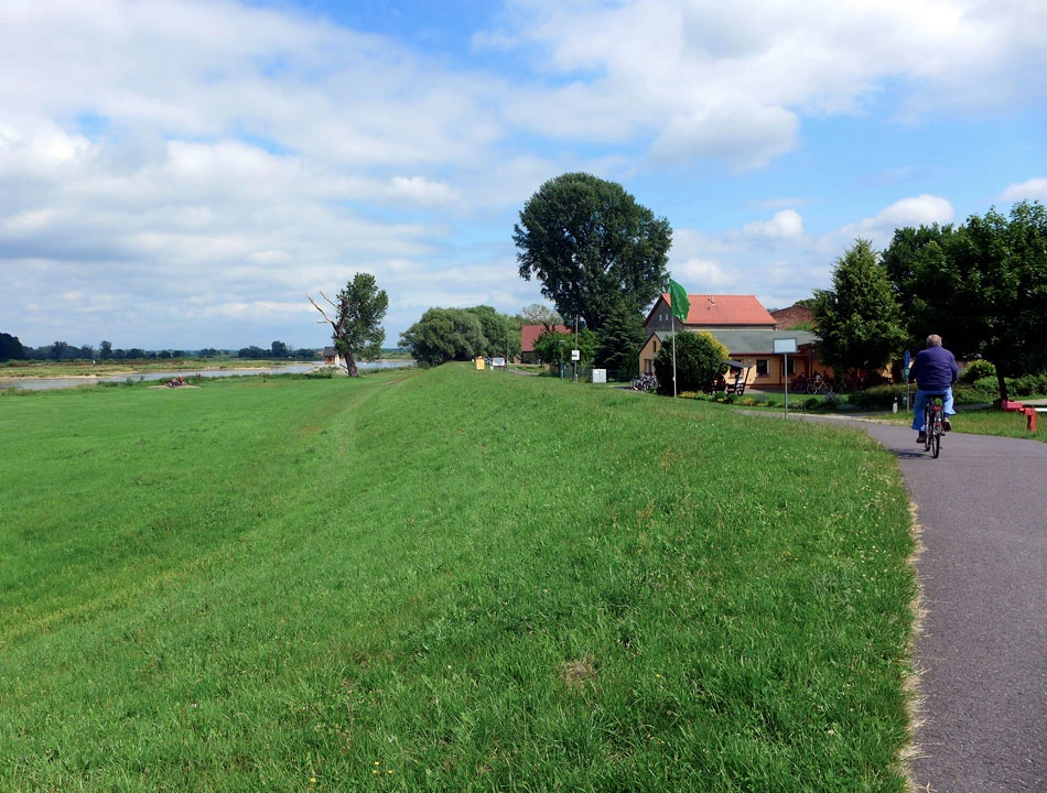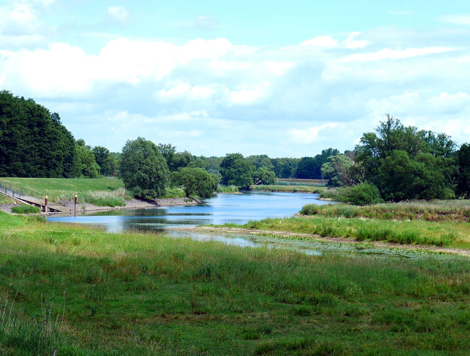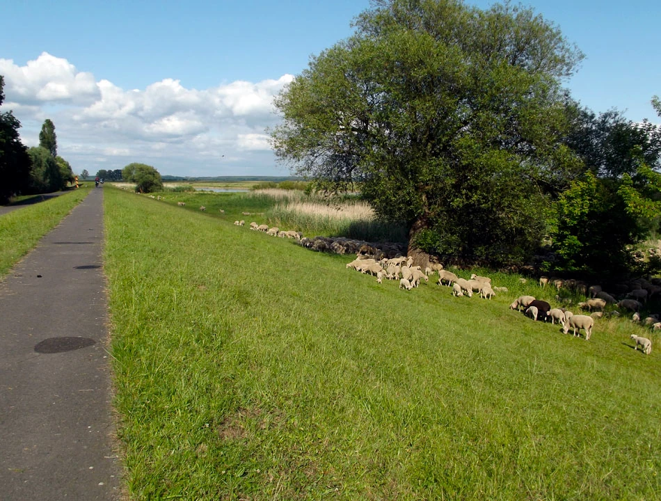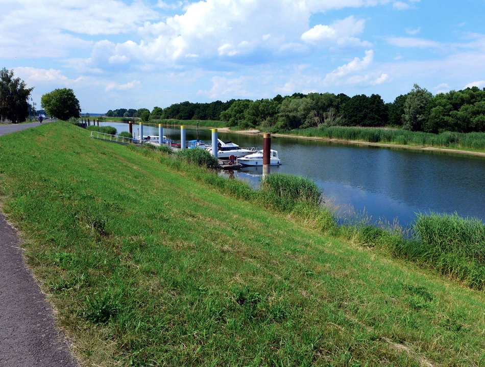 Coraz bliżej cel naszej dzisiejszej podróży — Schwedt. Kluczymy między rozlewiskami. Spotykamy tamy i śluzy. Rzeka jest coraz bardziej uregulowana. Jedziemy wzdłuż prostych jak linijka kanałów. Chcemy już dojechać do celu i zsiąść z rowerów. Ptactwo, widoki po horyzont.