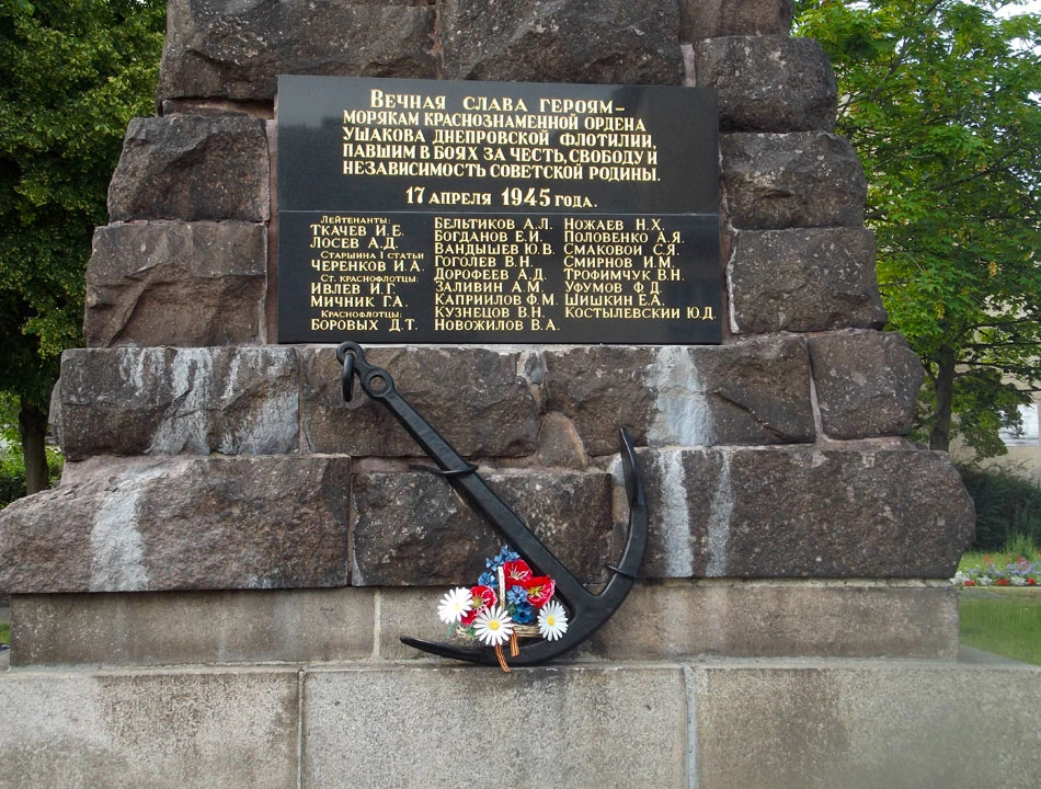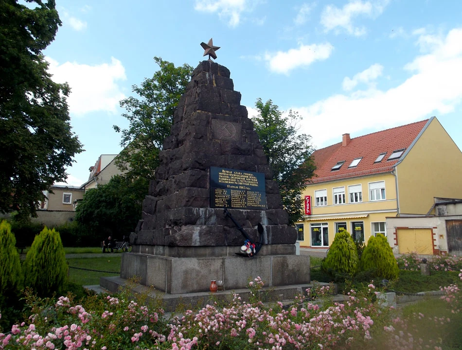 Przy wlocie do miasta znajdujemy pomnik — trochę nie wiadomo czemu tu stoi. Nie jest to pomnik wdzięczności, raczej docenienia ofiary krwi, ewidentnie postawiony Rosjanom przez Rosjan.