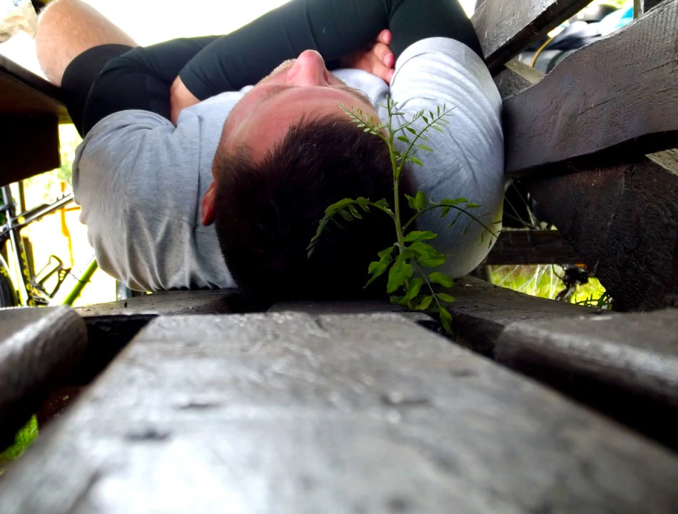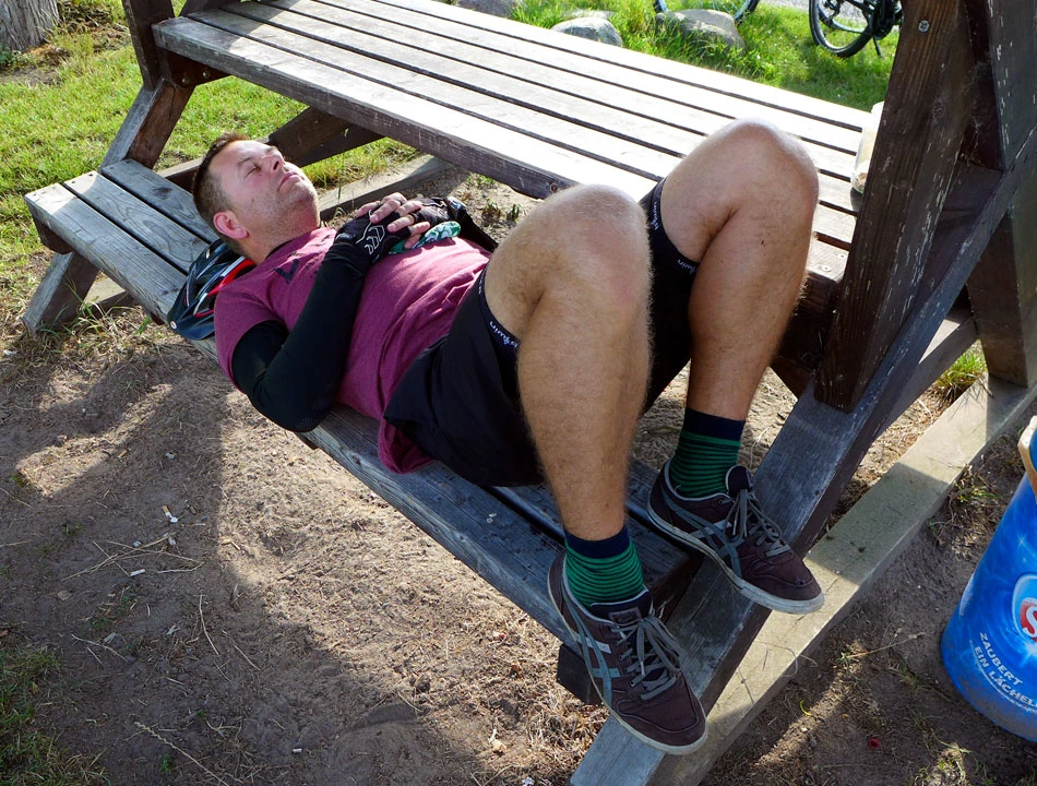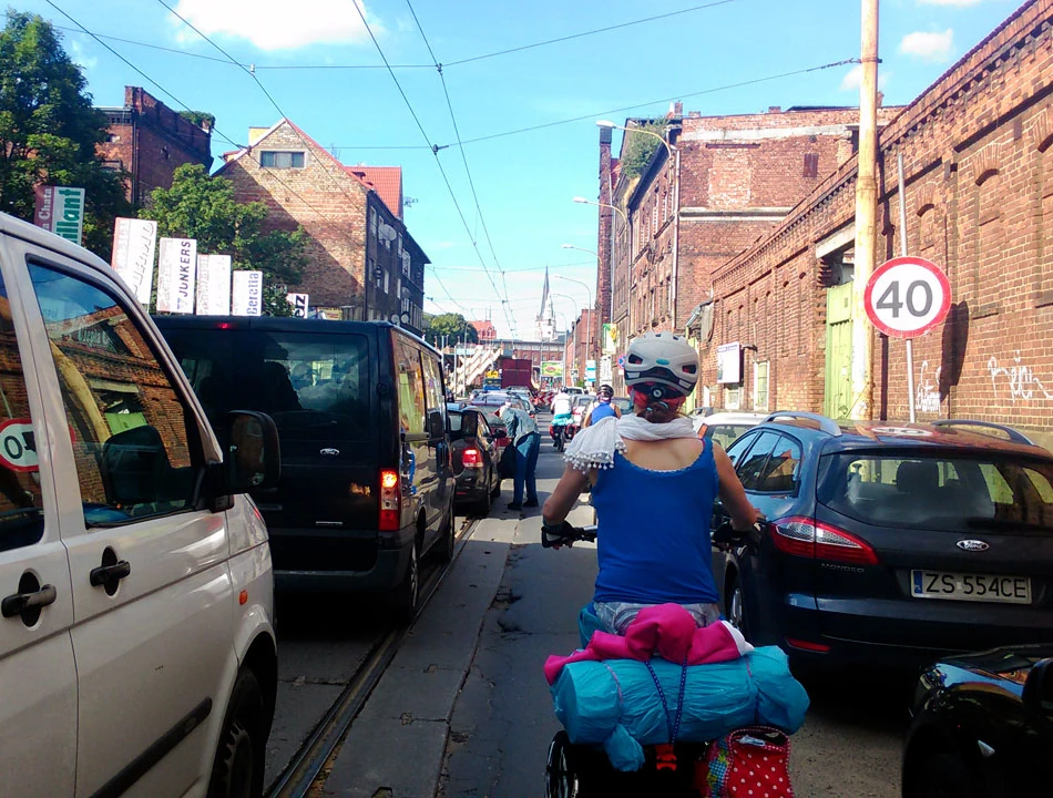 Jedzie sią nam jakby mozolniej. Jest coraz cieplej i ekipa potrzebuje sjesty. Do Frankurtu mamy jeszcze 20 kilometrów, a Marcie wysiada kolano; dalej jedzie na holu wspierana przez Piotrka.