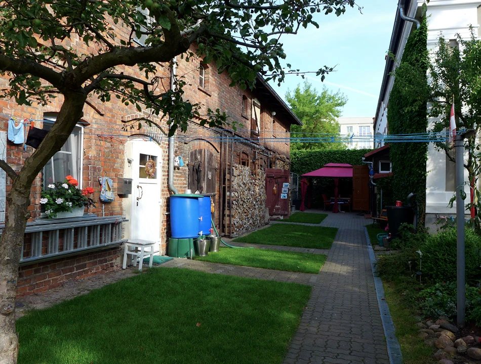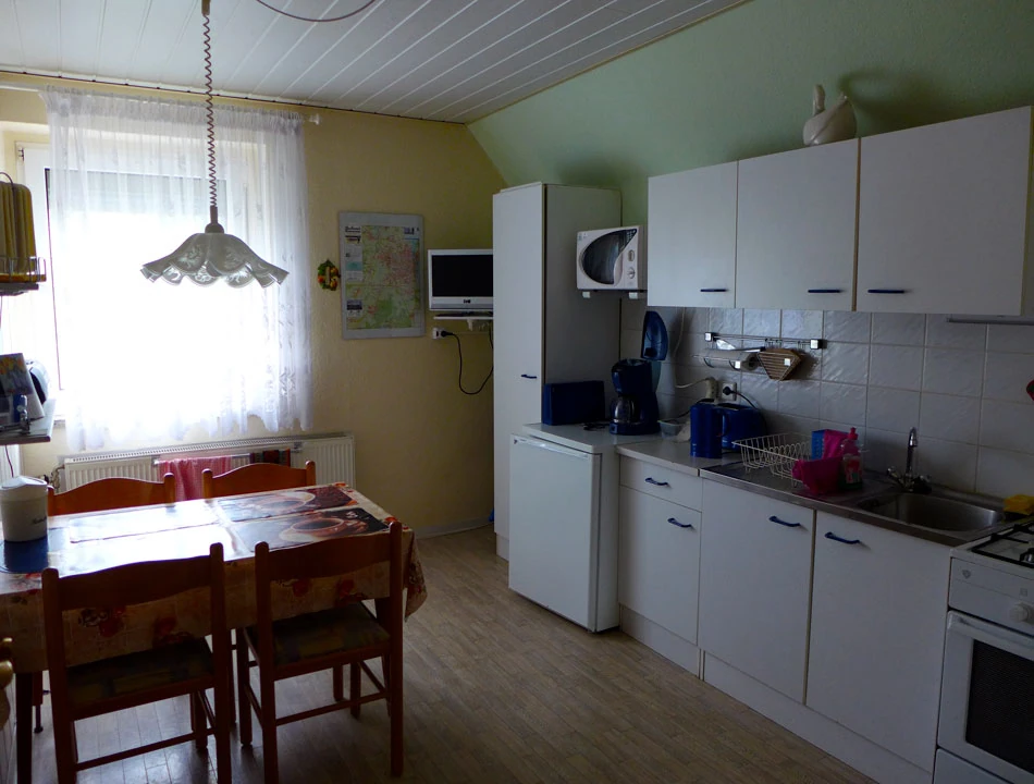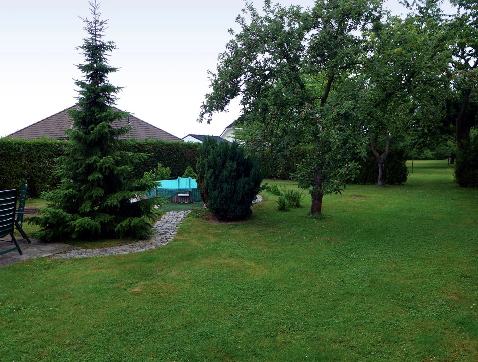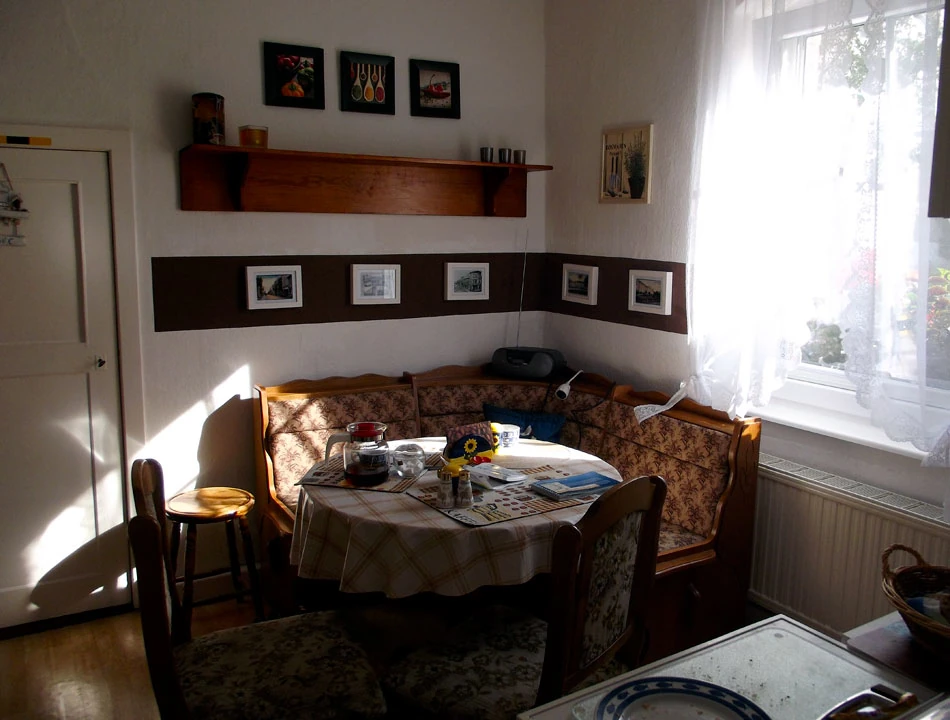 Domek ma ładny ogródek, miejsce na drobną biesiadę i schowek na rowery. W sumie pierwszy nocleg nie zabił nas ceną (koszty były zgodne z informacjami na stronie Bett und bike): samo spanie to koszt 20 € na osobę, śniadanie 3 €.