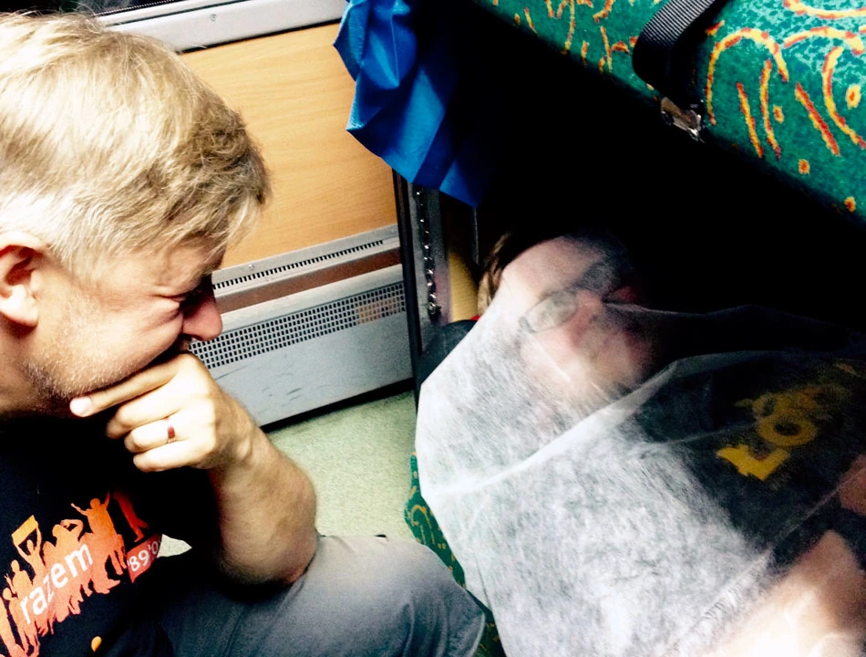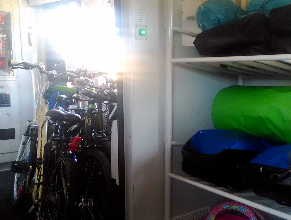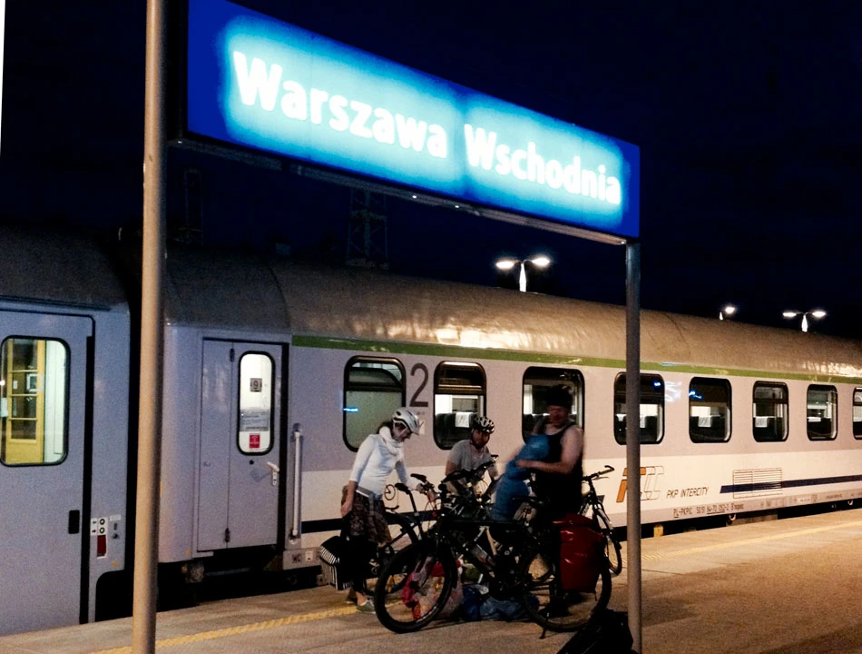Startujemy z Warszawy Wschodniej. Dzięki nieocenionej pomocy pana Waldemara i pani Anny z PKP Intercity mamy zapewniony wagon rowerowy z odpowiednio dużą liczbą miejsc na nasze maszyny. Co prawda przy kupnie biletów okazało się, że albo spanie w kuszetkach, albo przewóz rowerów, bo rowery muszą jechać pod opieką podróżnego, ale jakoś i to pokonaliśmy. Kowlak, zanim udaliśmy się do naszego kuszetkowego wagonu, koleguje się z niepełnosprawnym rowerzystą, chłopaki intensywnie sobie coś opowiadają, jednak Kowlak decyduje się noc spędzić z nami. Jedzie nas piątka, wykupujemy więc dodatkowo jedną kuszetkę i przedział jest nasz. To ważne, bo mamy jednak trochę bambetli i jedna z kuszetek staje się półką na bagaże.