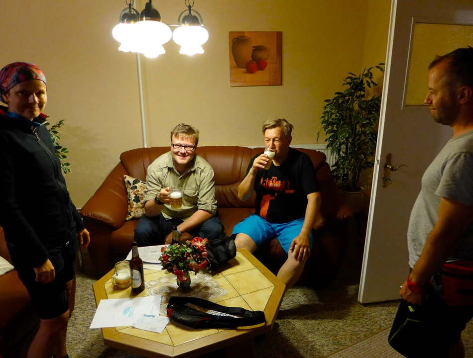 Rano jesteśmy w Jeleniej Górze. Nie wszyscy się wyspali, bo Piotrek chrapał donośnie. Sprawdzamy, jak nasze rowery przetrwały noc; wszystko jest w porządku. Wyciągamy sprzęty i w drogę, na spotkanie z szóstym członkiem ekipy — drugim Marcinem.