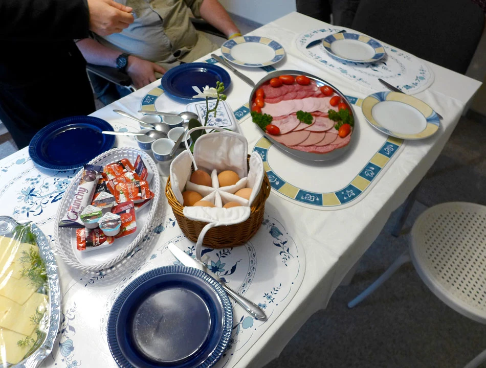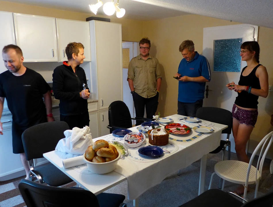 Państwo Höer, nasi gospodarze, są przemiłymi ludźmi. Nie dość, że po nocy udzielają noclegu bandzie sześciu rowerzystów i rowerzystek — i to tylko na jedną noc, to jeszcze rano (nie tak znowu rano, bo o 8:30) przywożą nam śniadanie.