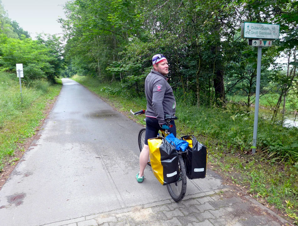 W nocy trochę padało, jest pochmurno, chłodno i wilgotno. Droga znowu jest urozmaicona — wiedzie przez wsie, lasy, pola. Zbliżamy się do Gubina, kolejnego miasta, które ma podwójną wersję nazwy. Kiedyś było to jedno miasto i nie przecinała go granica państwowa.