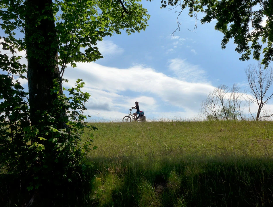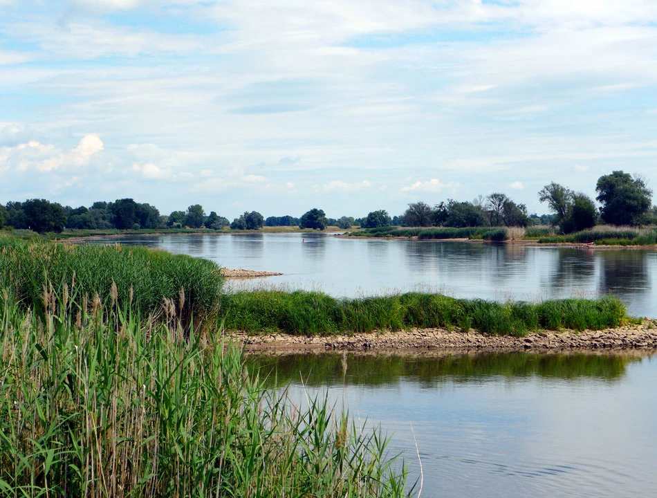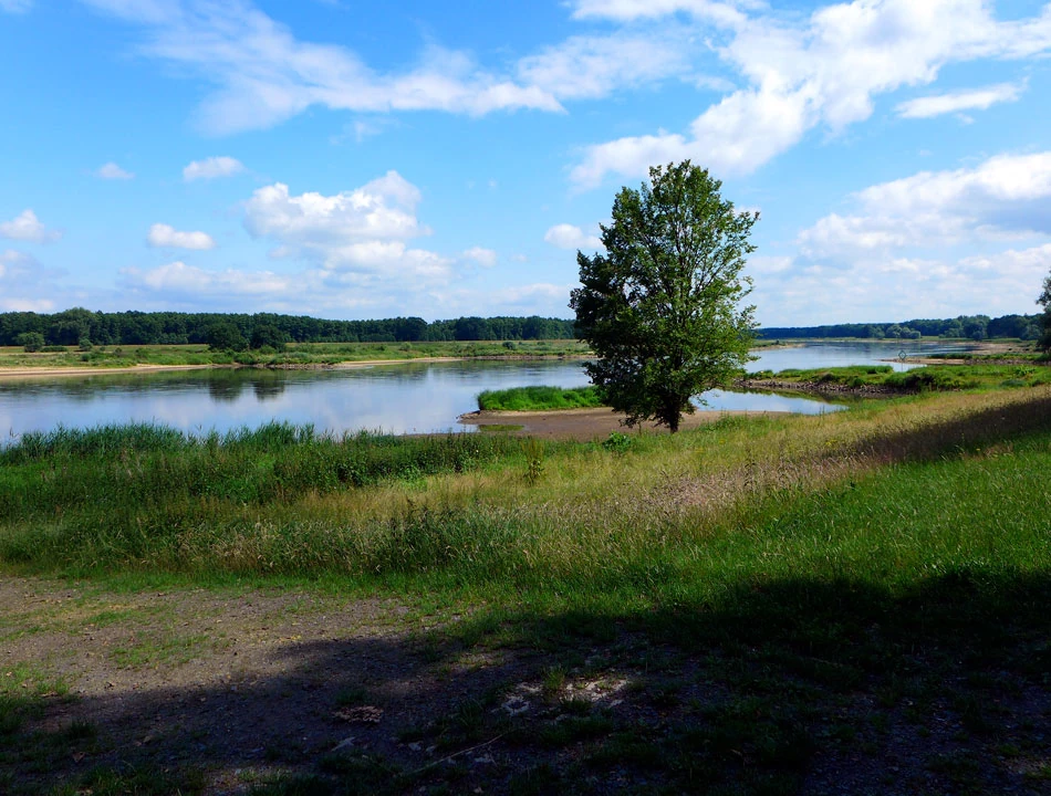 Kierujemy się w stronę Lebus. Odra robi się coraz większa. Rozlewa się szeroko, a i sama dolina rzeki jest duża. Nadal nie widzimy zbyt wielu osób na rowerach. Tchnie spokojem.