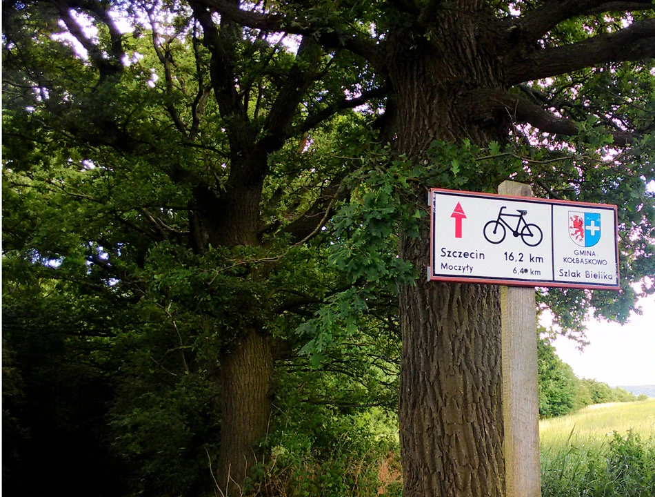 Tu intuicja nas zawodzi i gubi nas przyzwyczajenie nabyte w Niemczech. Kusi nas tabliczka z nazwą drogi i ładny asfalt. Jednak to tylko pozory. Asfalt za chwilę się kończy, zaczyna się szuter i wreszcie leśna droga. Szlak Bielika jest tylko dla orłów. Stromizny takie, że zadowoleni byliby amatorzy downhill'u. Kończą się oznaczenia i tracimy jasność jak jechać. Pocieszające, że do Szczecina jest już naprawdę blisko.