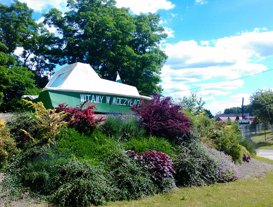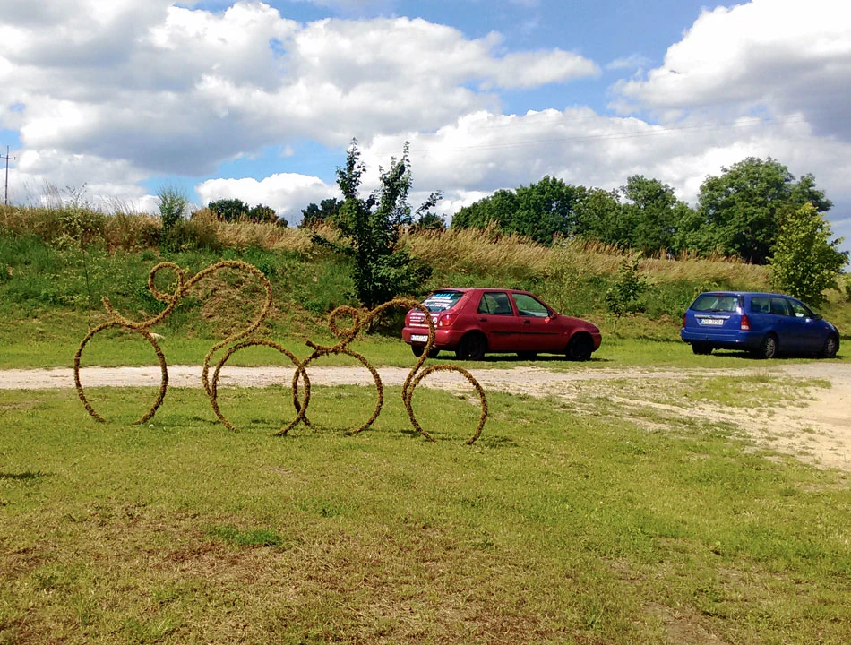 Nadal jedziemy wzdłuż Odry. W Moczyłach robimy sobie postój. Niestety nie ma już przyjaznych wiat do odpoczynku. Są za to, adekwatne do trasy, dzieła sztuki.