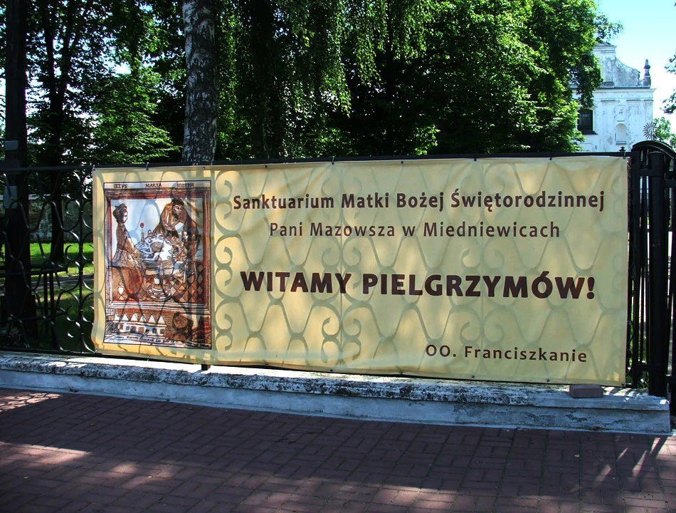 Dojeżdżamy do Miedniewic, znanego sanktuarium Maryjnego. Przed zwiedzaniem posilamy się w lokalnym sklepie. I co za spotkanie! Na półce, a także w lodówce, dumnie pręży się Czesio – nasz wierny towarzysz.