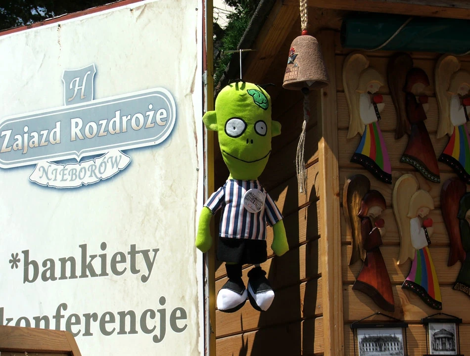 W Nieborowie można podziwiać park i XVII wieczny barkowy pałac. My jednak skupiliśmy się na straganie z pamiątkami, bo przecież trzeba przywieźć do domu jakieś przykłady łowickiego folkloru. I tu też spotkaliśmy Czesia.