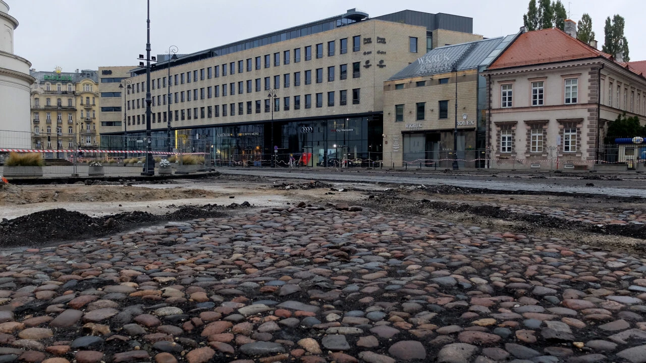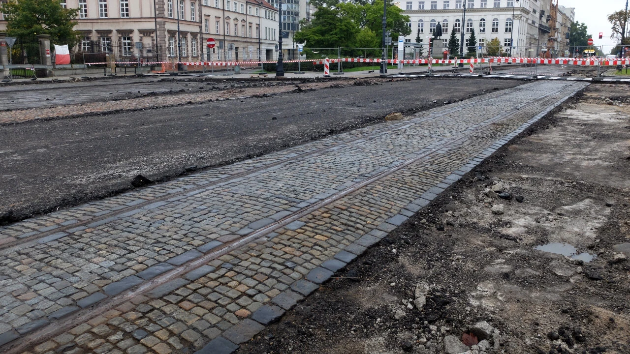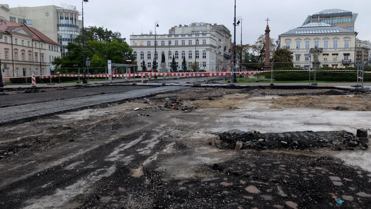 Plac cały rozkopany, widać stare tory tramwajowe i bruk. Tramwaj jeździł tędy jeszcze w 1960 roku. Na przebudowie placu zyskają przede wszystkim piesi i rowerzyści. Połączona zostanie infrastruktura od Al. Ujazdowskich do Nowego Światu. Pojawi się sygnalizacja świetlna, a przejście dla pieszych zyska azyle.