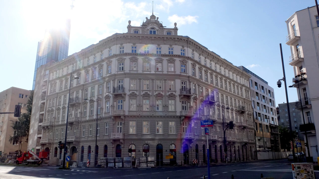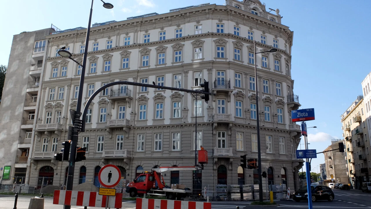 Najpierw jednak mała zaległość. Podjeżdżamy na skrzyżowanie Złotej i Żelaznej. Stoi tu kamienica Wolfa Krongolda. Już jakiś czas temu zdjęto rusztowania. Widok powala, jest pięknie. Kamienica powstała pod koniec dziewiętnastego wieku. Wojnę jakoś przetrwała, ale pozbawiono ją wszelkich zdobień. Całkiem podupadła nieremontowana dziesięciolecia. W 2015 została przez Warszawę sprzedana prywatnemu inwestorowi. Teraz można oglądać efekt prac na zewnątrz budynku, w środku wciąż trwa remont.