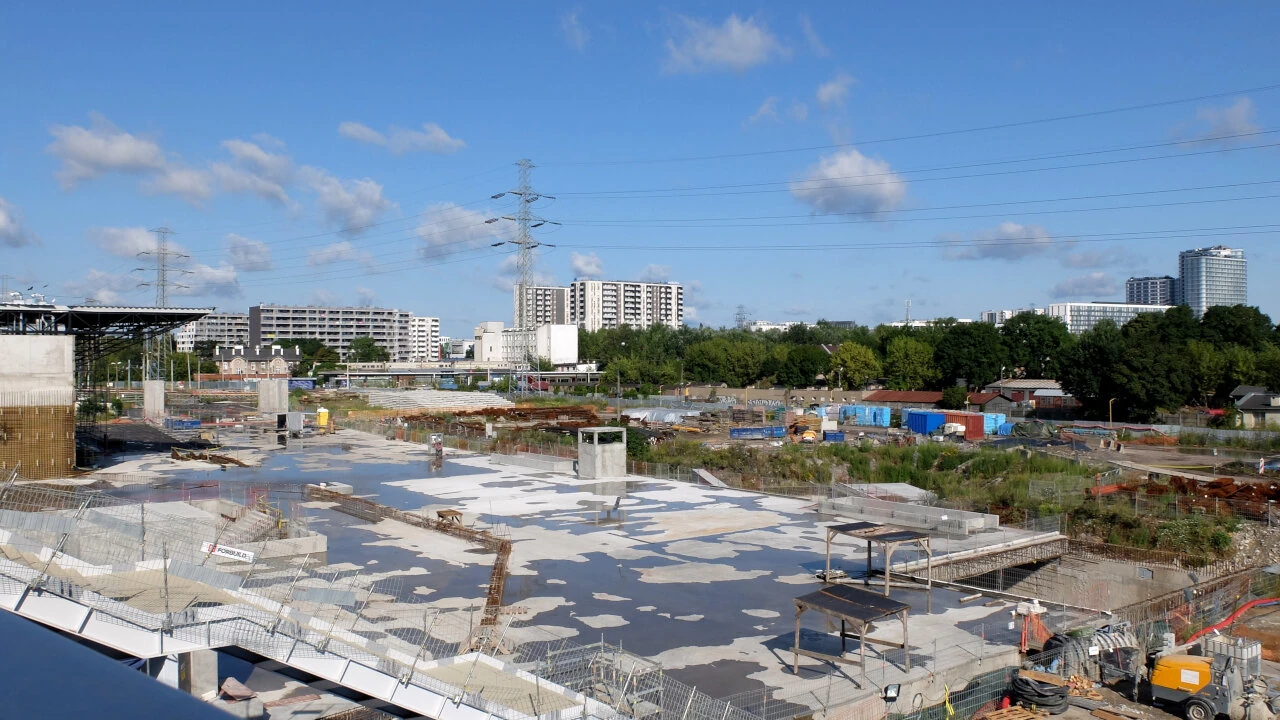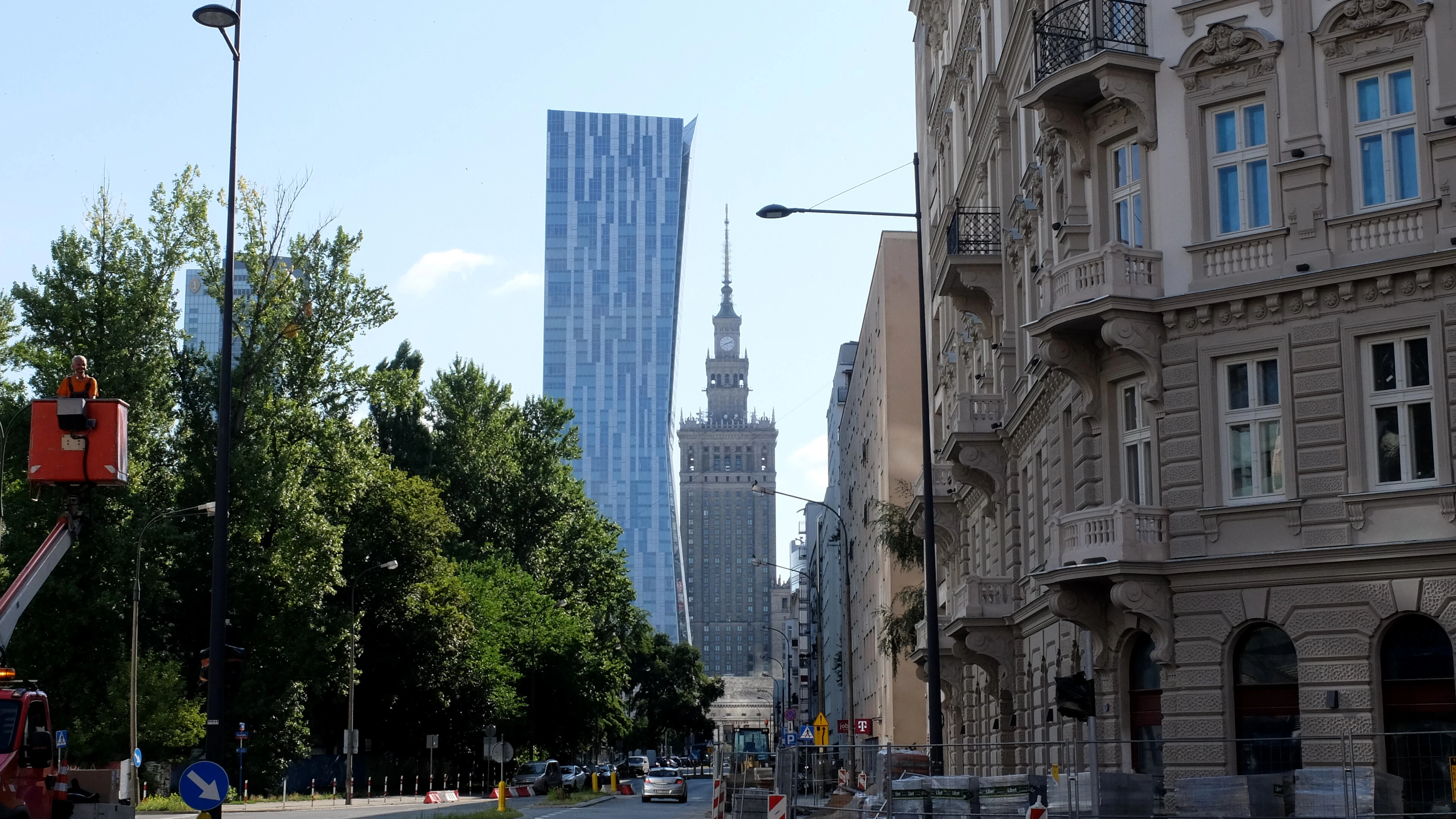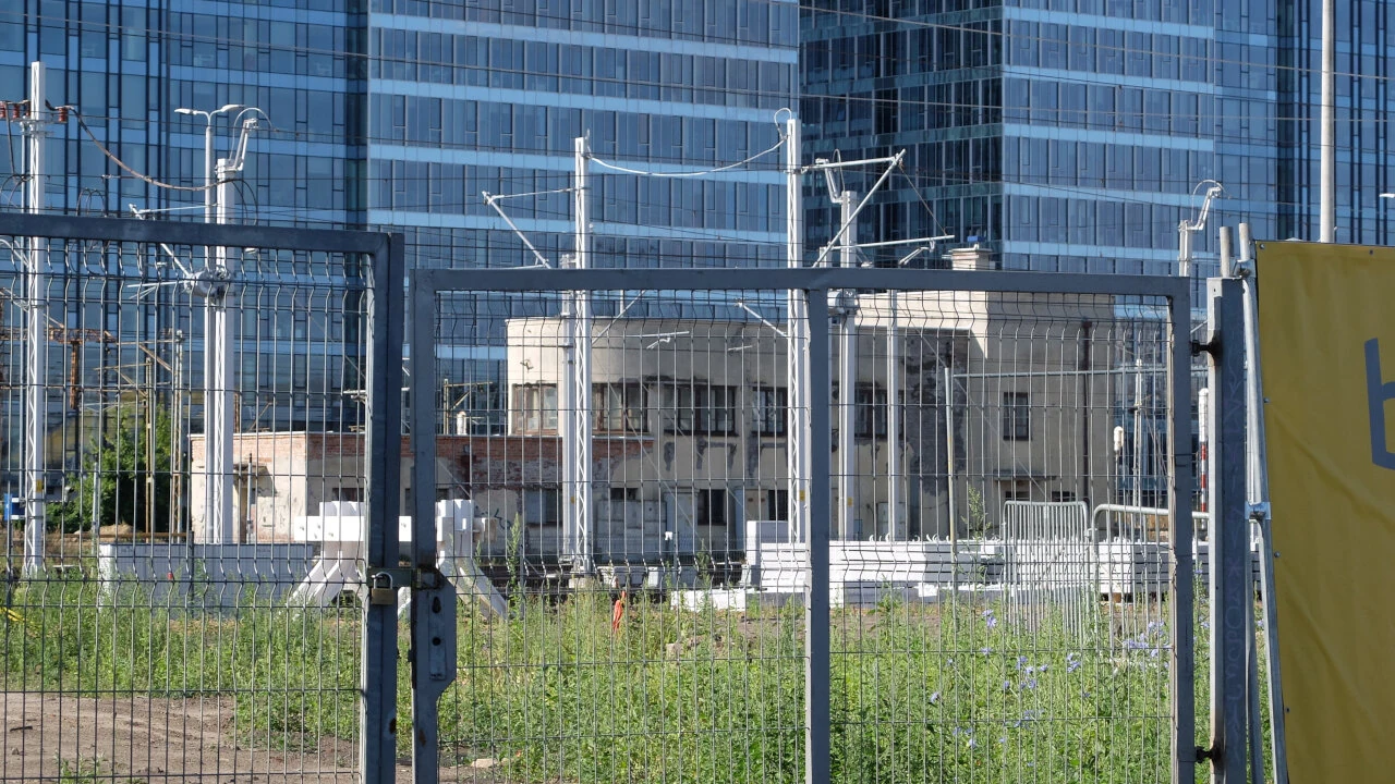 Przebijamy się przez budowę Dworca Zachodniego. Kontrast między nowymi a starymi zabudowaniami jest ogromny.
