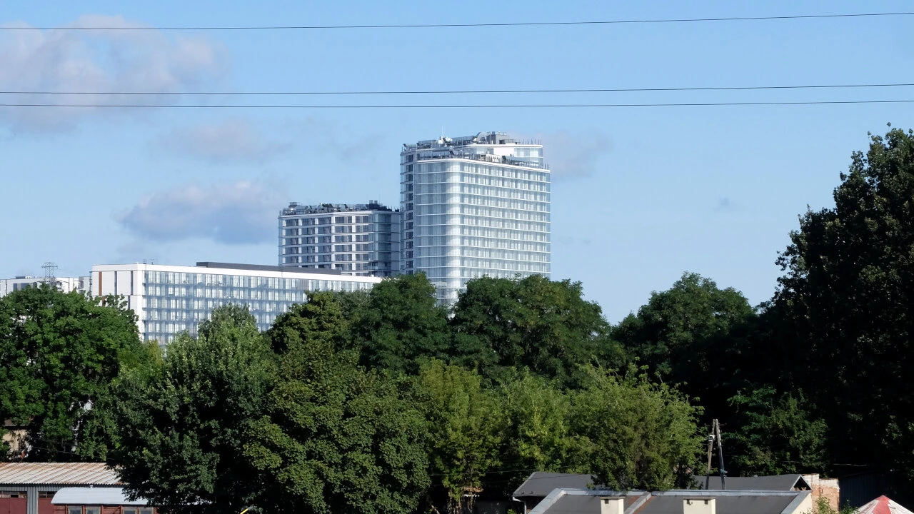 Ze szczytu pochylni widać gigantyczny plac budowy. Ale widać też „pekin” na rogu Prymasa Tysiąclecia i Kasprzaka. Powiew Azji nazywa się tu Bliska Wola Tower.