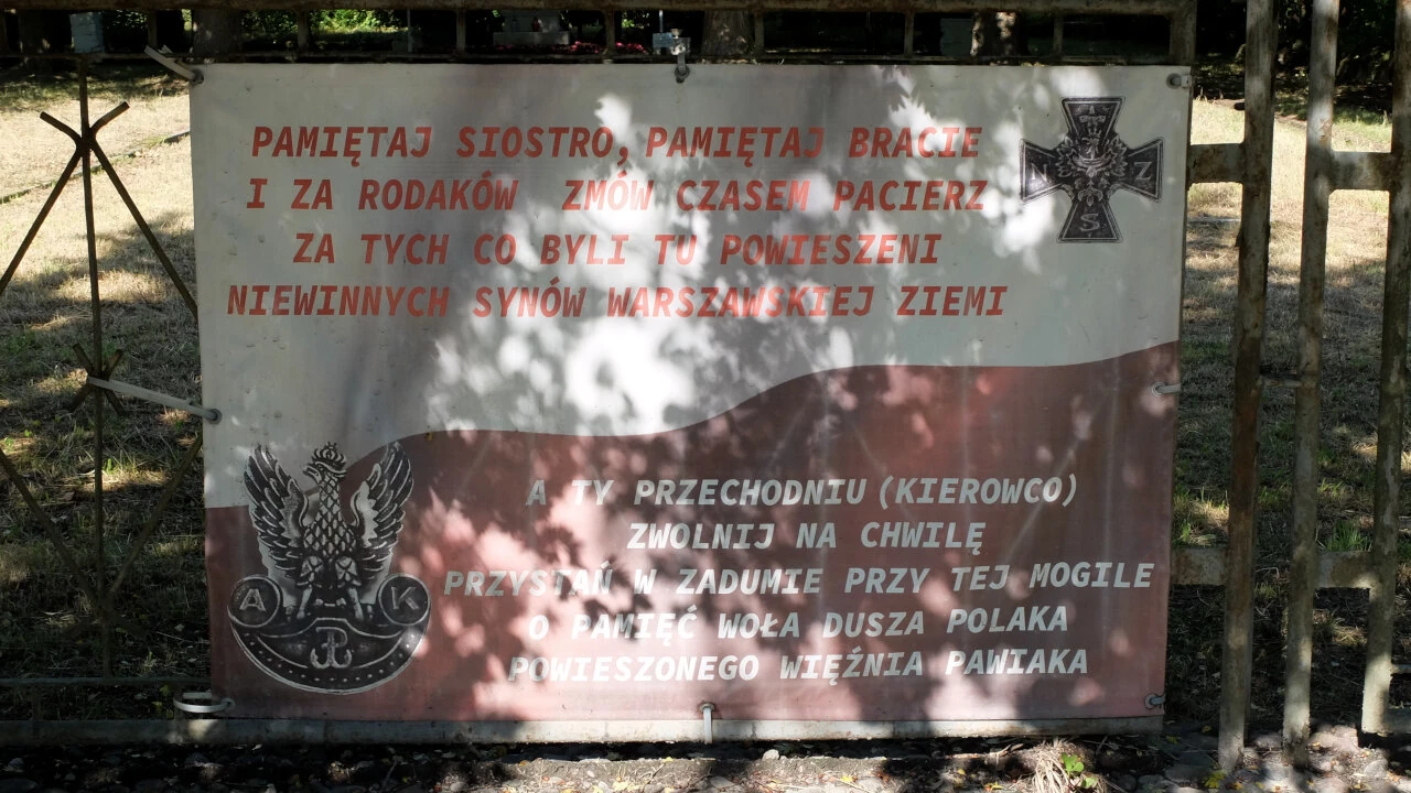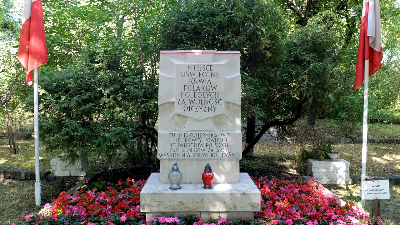 Wracamy w stronę Gniewkowskiej i skręcamy w Moczydłowską by zobaczyć coś, czego nie widzieliśmy dotąd, wielokrotnie penetrując Odolany. Na mapie występuje pod nazwą „Szubienica na Woli”. Jak można przeczytać na Warszawikia miejsce związane jest z akcją „Wieniec” czyli zniszczenia w 1942 roku torów kolejowych w kilku miejscach Warszawy. W odwecie Niemcy powiesili kilkadziesiąt osób. Zachowała się jedyna z pięciu szubienic i przed nią właśnie stoimy.