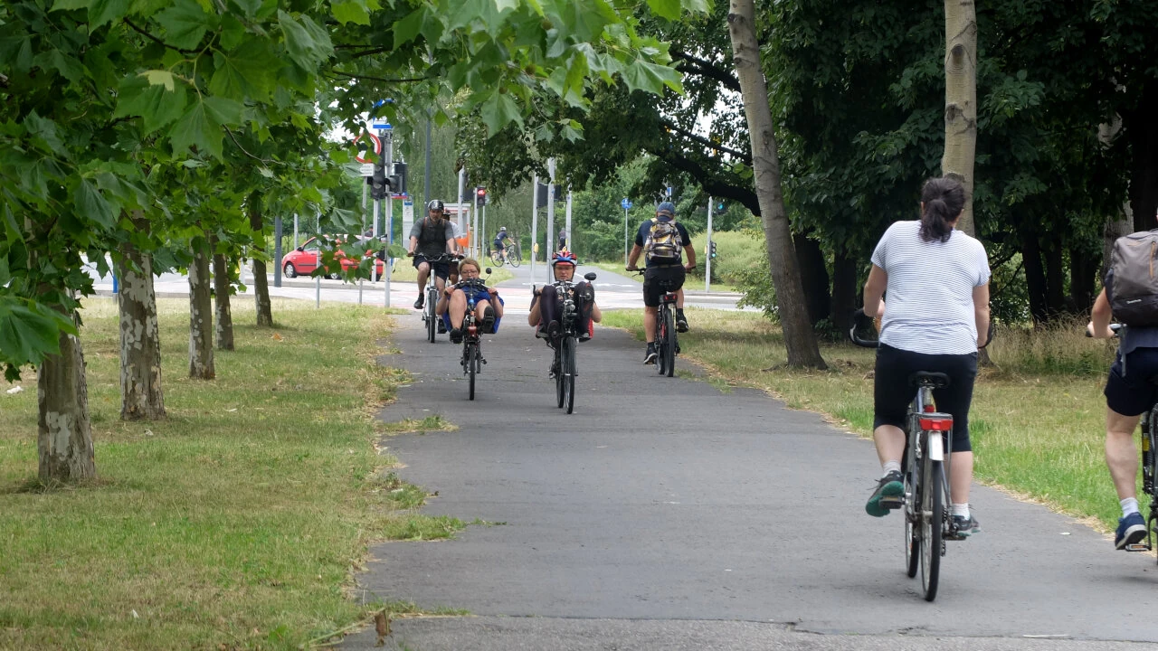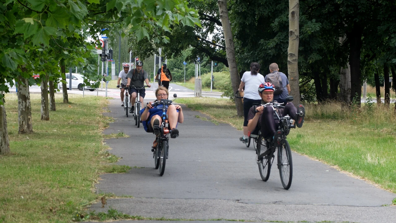 Ruszamy i rzeczywistość kostropata upomina się o uwagę – nawierzchnia drogi dla rowerów jest coraz gorsza – same dziury. A obok taki piękny asfalt, lecz nie dla nas.