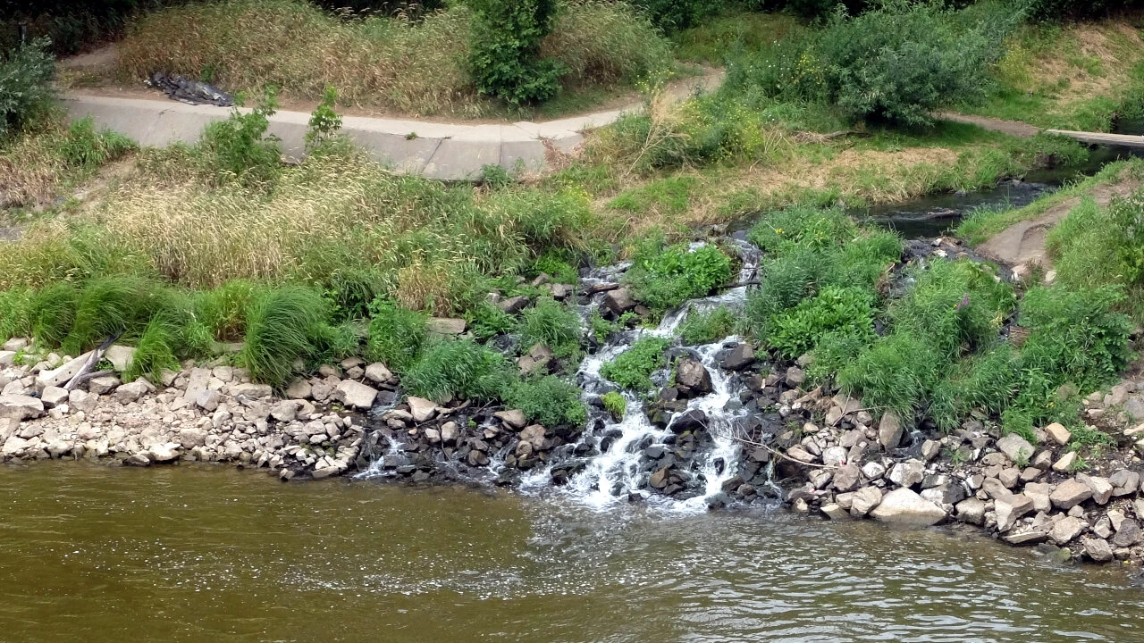 To my Dolinką do Mostu Siekierkowskiego i jesteśmy na drugim brzegu królowej polskich rzek. A tu same widoki: panorama City, miniwodospad i ludność wiosłująca. Stoimy chwilę zapatrzeni.
