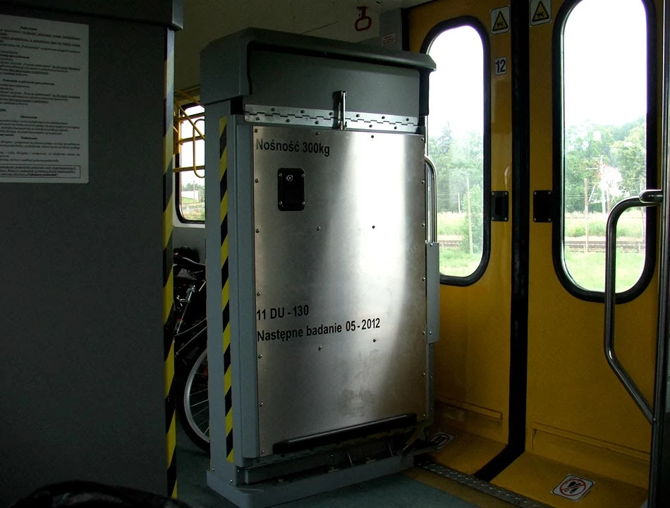 Nasz wagon jest dodatkowo wyposażony w windę dla osób poruszających się na wózkach inwalidzkich, ale pan podróżujący z synem na wózku nawet nie próbuje jej uruchomić. Wysiada sprowadzając wózek po schodach; obsługa pociągu nie próbuje pomóc.