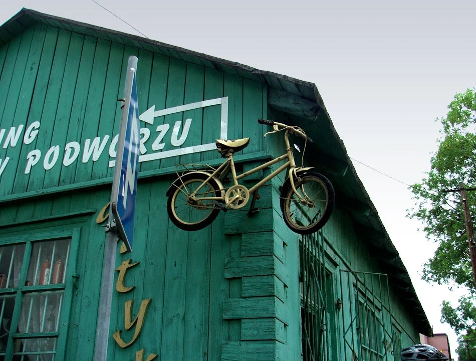 Rower cały, Marcin nieco pokiereszowany: szarpane rany na dłoni i nodze. Chwila postoju na otrzepanie się z kurzu i jedziemy dalej. Po drodze — jeszcze w Sochaczewie przy ulicy Chodakowskiej wchodzimy do sklepu z różnymi cudeńkami, starą porcelaną, srebrnymi sztućcami. Pod sufitem wiszą pięknie zdobione lampy naftowe.
