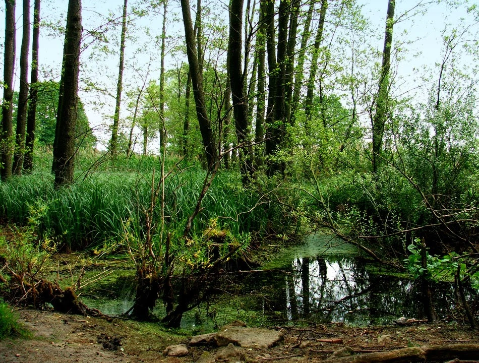 Z Bromierzyka, jadąc w stronę Famułek Królewskich, wjeżdżamy w gęsty las, drogą, którą kiedyś wytyczyli i utwardzili Olendrzy. Droga biegnie jakby groblą, po obu stronach której same bagna. Jak mówią znajomi ze Stowarzyszenia Razem jeszcze w maju droga była zalana i nieprzejezdna. Momentami dróżka ledwo mieści rower, wysokie na ponad metr pokrzywy atakują boleśnie łydki i dłonie, wszędzie pełno kąsających meszek.