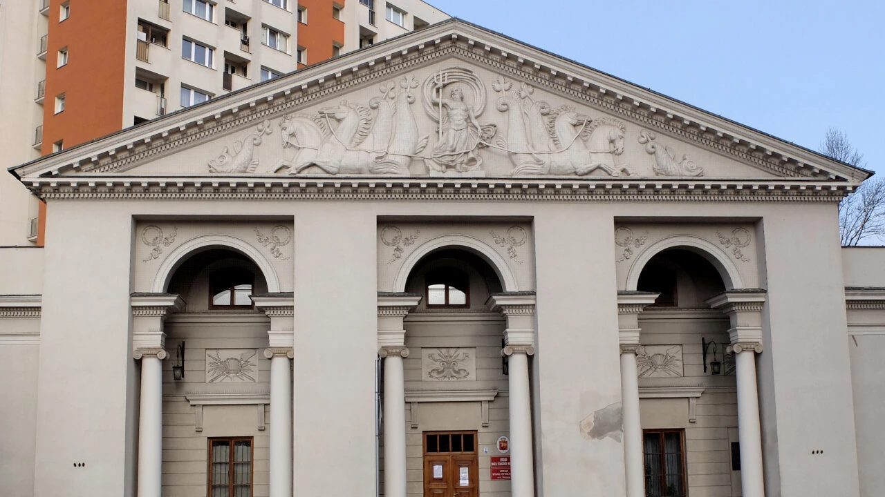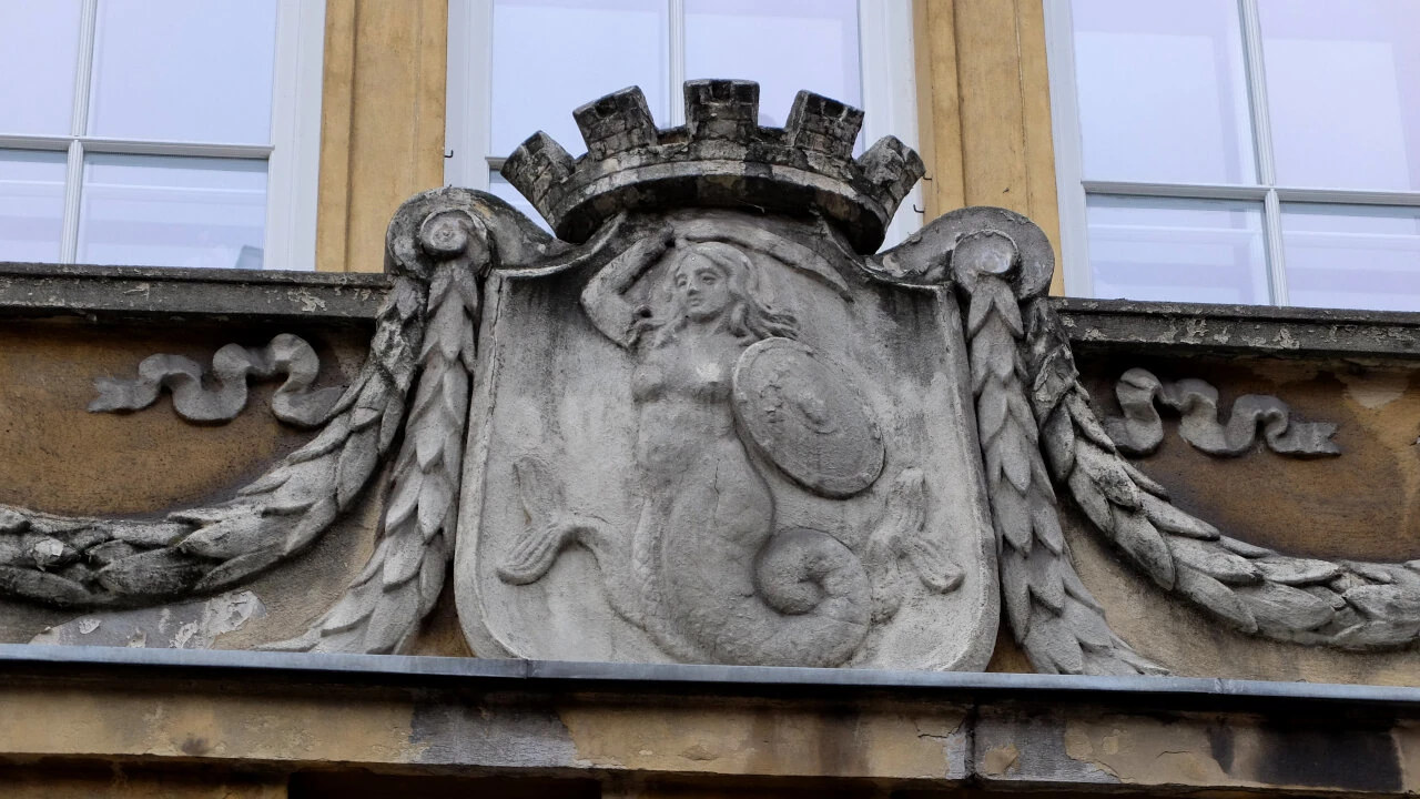 Fronton budynku ma „wodne” zdobienia; widać Neptuna i delfiny. Teraz jest tu urząd stanu cywilnego.