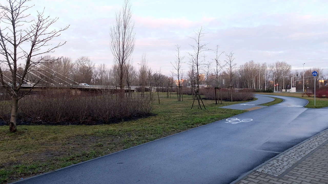 Wjeżdżamy na wiadukt Mostu Grota, trochę się gubiąc w kierunkach, bo przecież nie ma tu drogowskazów – każdy na rowerze wie, jak jechać. Obok Kępy Potockiej dojeżdżamy do Barszczewskiej – ulicy, której bruk pamięta czasy mocno sprzed II Wojny Światowej. Trudno uwierzyć, że przy ulicy stało kiedyś 19 budynków. Dalej jedziemy Potocką, która od ostatniej naszej wizyty też się mocno zmieniła – nie ma starej kamienicy z ciekawym muralem.