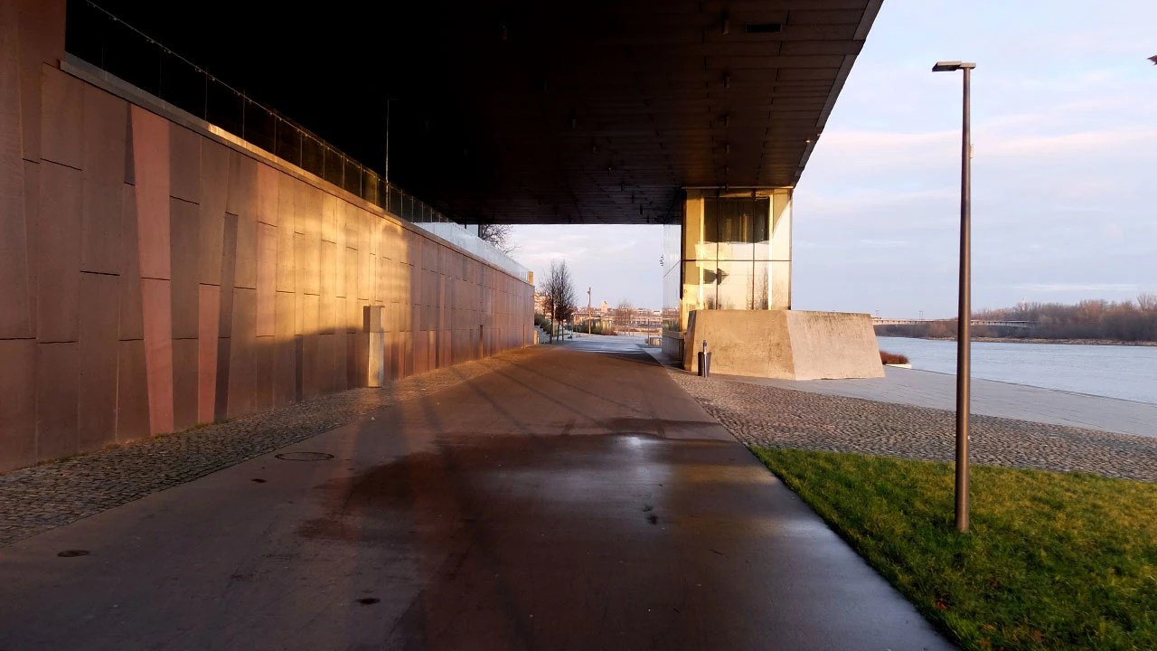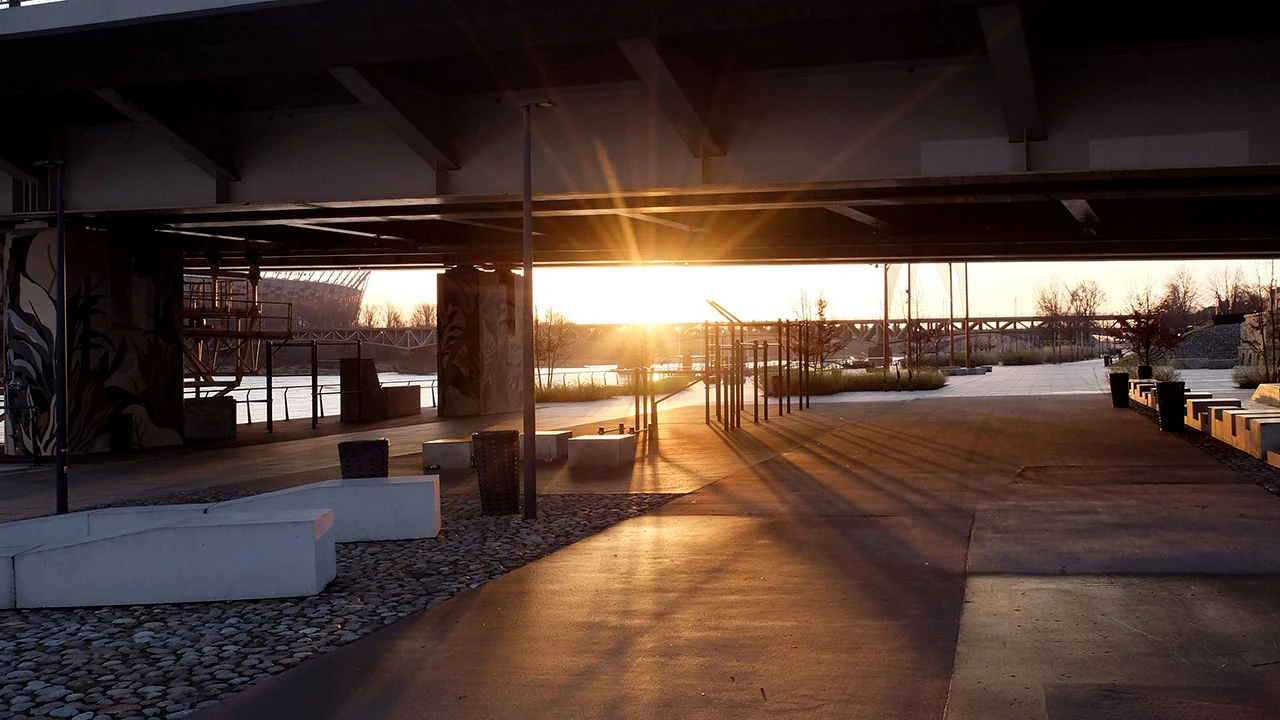 Warszawa nad Wisłą jest piękna, szczególnie o poranku. Pusto jest w pobliżu Centrum Nauki Kopernik. Nic nie zakłóca snu ludzi bezdomnych śpiących pod kładką obok Centrum. Nie wiemy, czy ci śpiący teraz pod betonowym dachem też zachwycaliby się panoramą Warszawy.