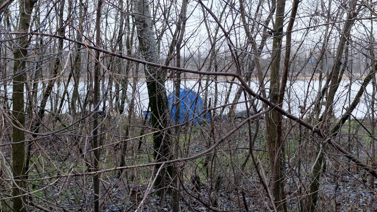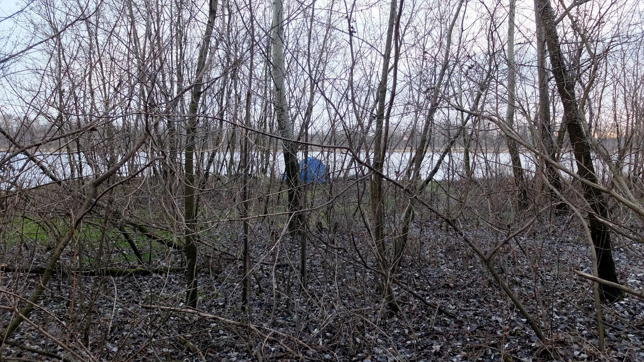 Nad rzeką są nie tylko bobry. Ktoś rozbił się na brzegu. Mamy nadzieję, że nie marznie, bo temperatura nie przekracza kilku stopni, a przy gruncie jest pewnie bliska zeru.