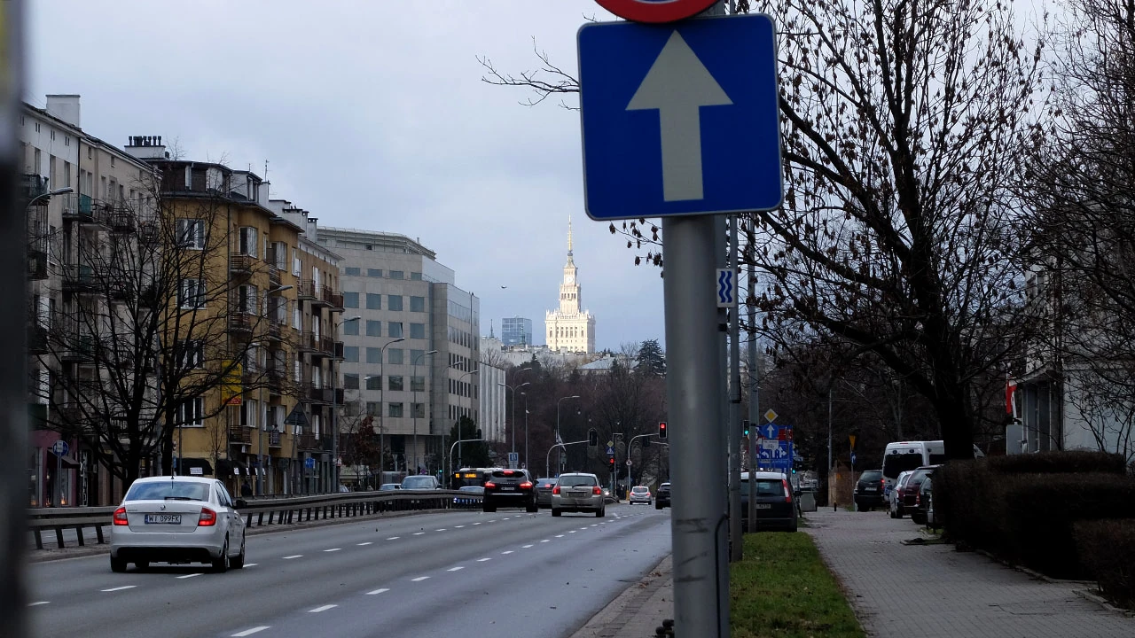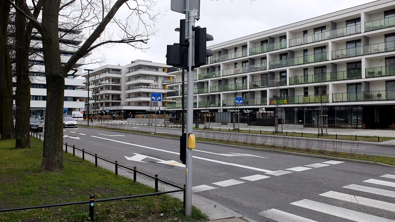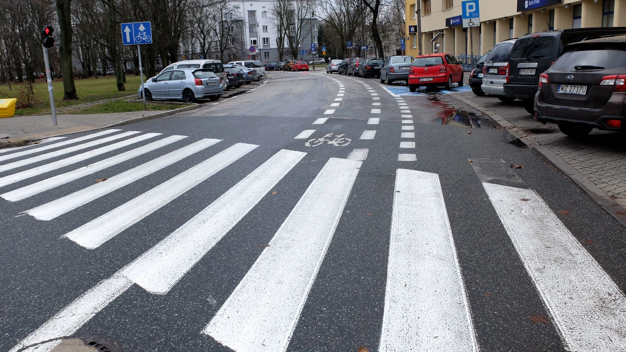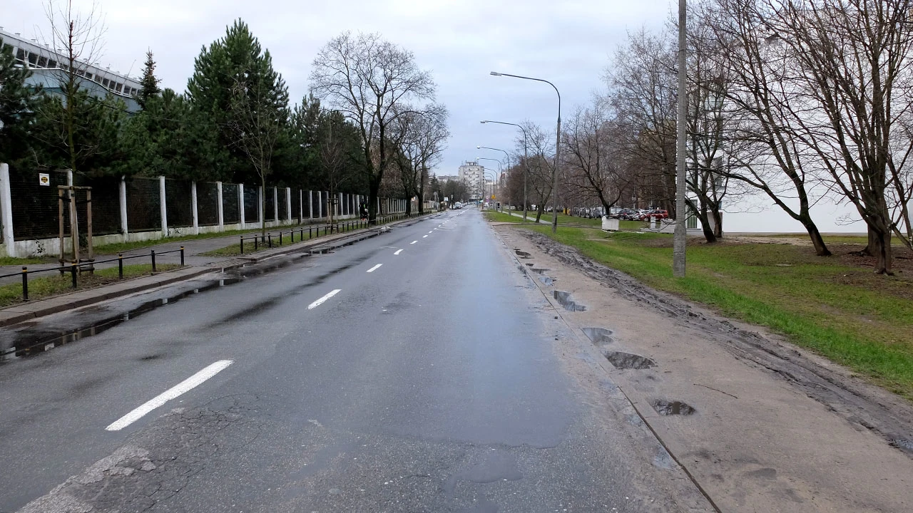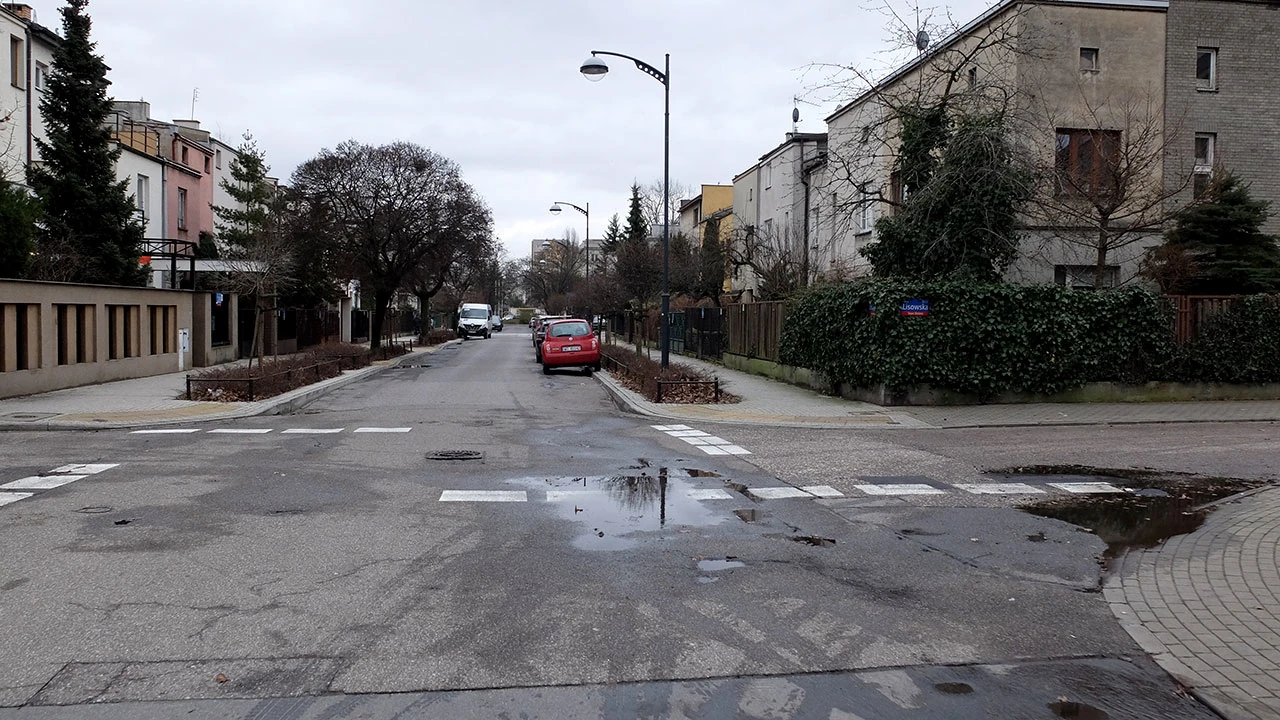 A teraz zapowiadana zmiana kierunku i ruch na południe. Jedziemy Schroegera, Perzyńskiego, Kochanowskiego.