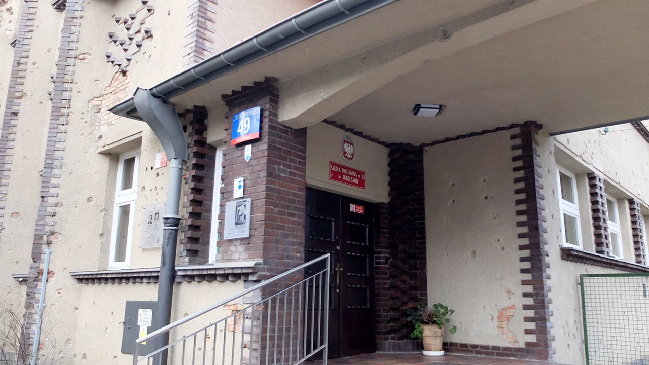 Przecinamy Krasińskiego, nadal pozostając w obrębie Starego Żoliborza. Dużo tu, rzecz jasna, śladów po okupacyjnej działalności Armii Krajowej. Na Czarnieckiego przystajemy przy Szkole Podstawowej nr 123, której budynek powstał w latach trzydziestych XX wieku. Na ścianach widać ślady powstałe podczas walk powstańczych.