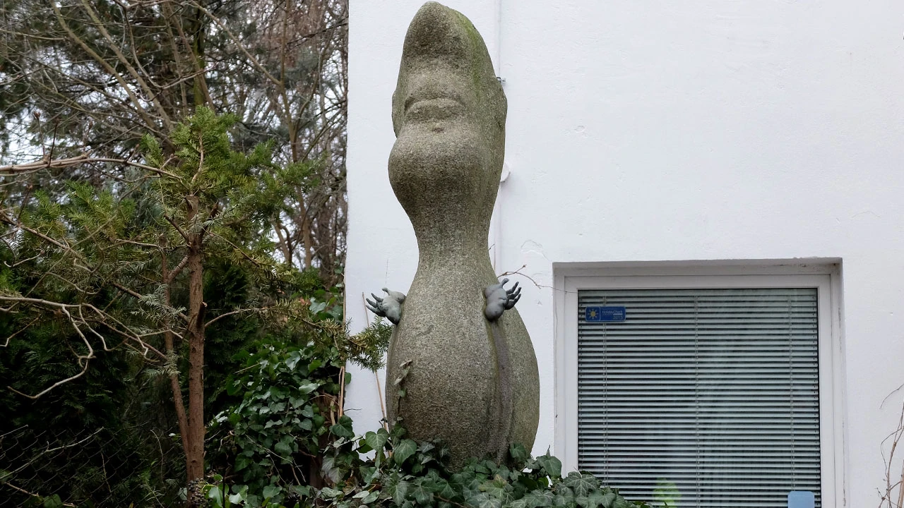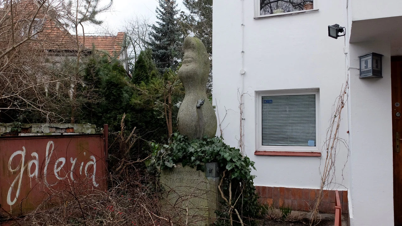 Przy Ejsmonda wpada nam w oko mocno niepokojąca rzeźba. W dodatku poświęcona jest Edwardowi Stachurze. Czemu akurat tutaj?